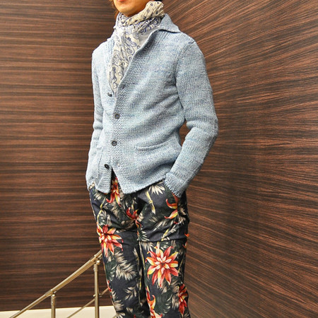 襟付きのカーディガンタイプですので、カジュアルなジャケットのようにも
