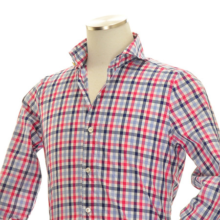 綿100%の薄手の生地、ホワイト×ネイビー×ブルー×ピンクのさわやかなチェック、
