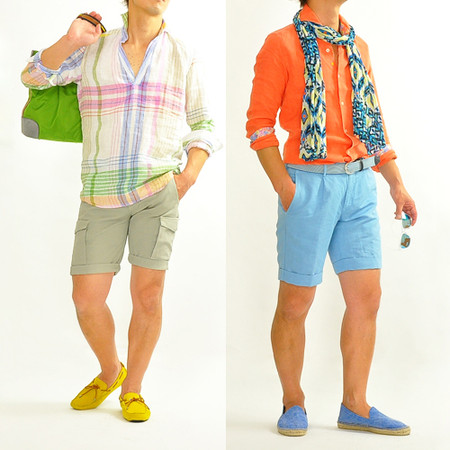 ショートパンツ×シャツの大人カジュアルスタイル。
