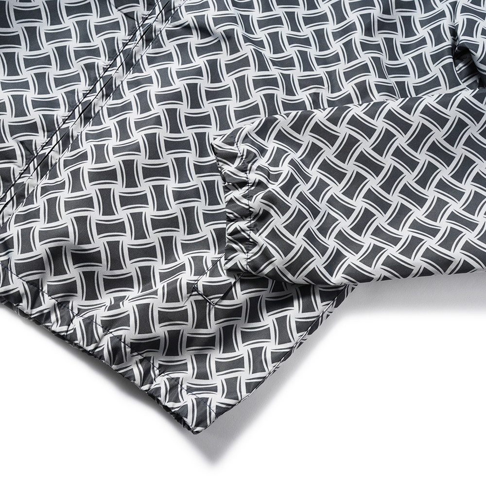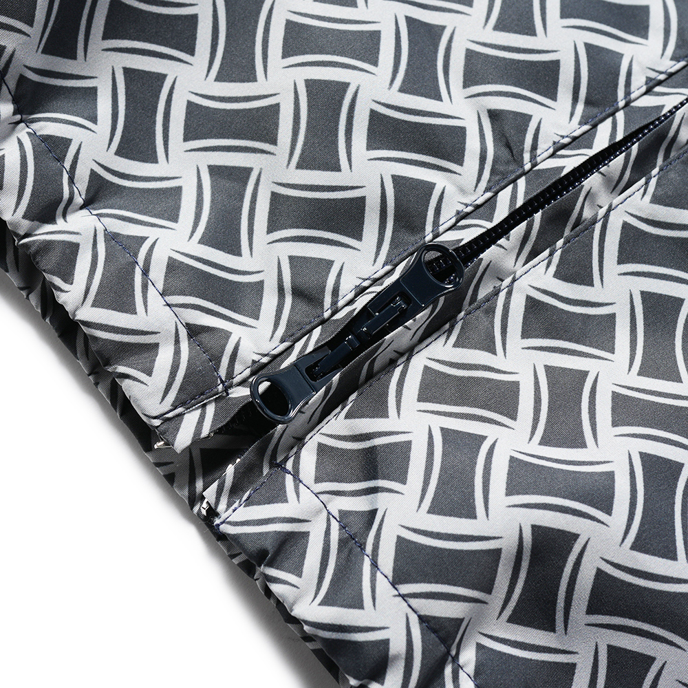 高密度に打ち込まれたポリエステル生地に、ドルモアのアイコンでもあるビスコッティ柄をあしらい、ドルモアとわかるアイコニックなデザインです。