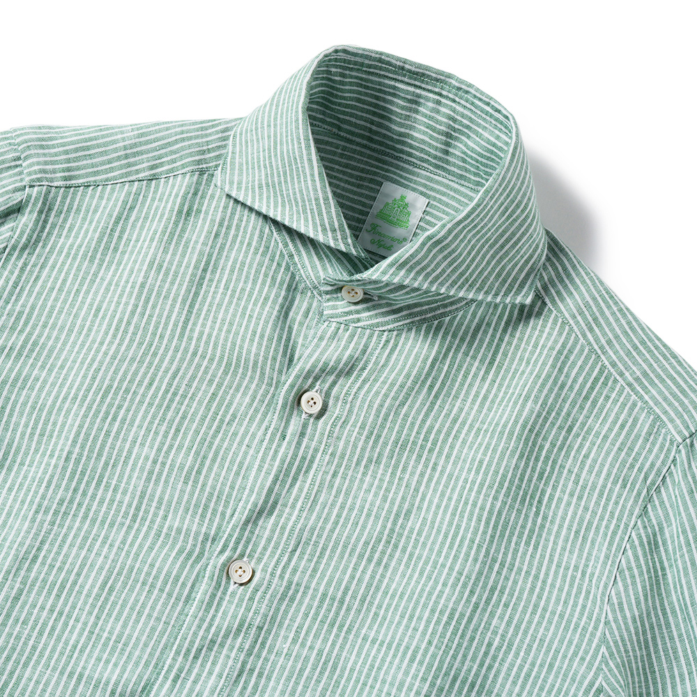 FINAMORE SERGIO BARI/240036 M0593 リネン ストライプ カッタウェイカラーシャツ【新入荷】