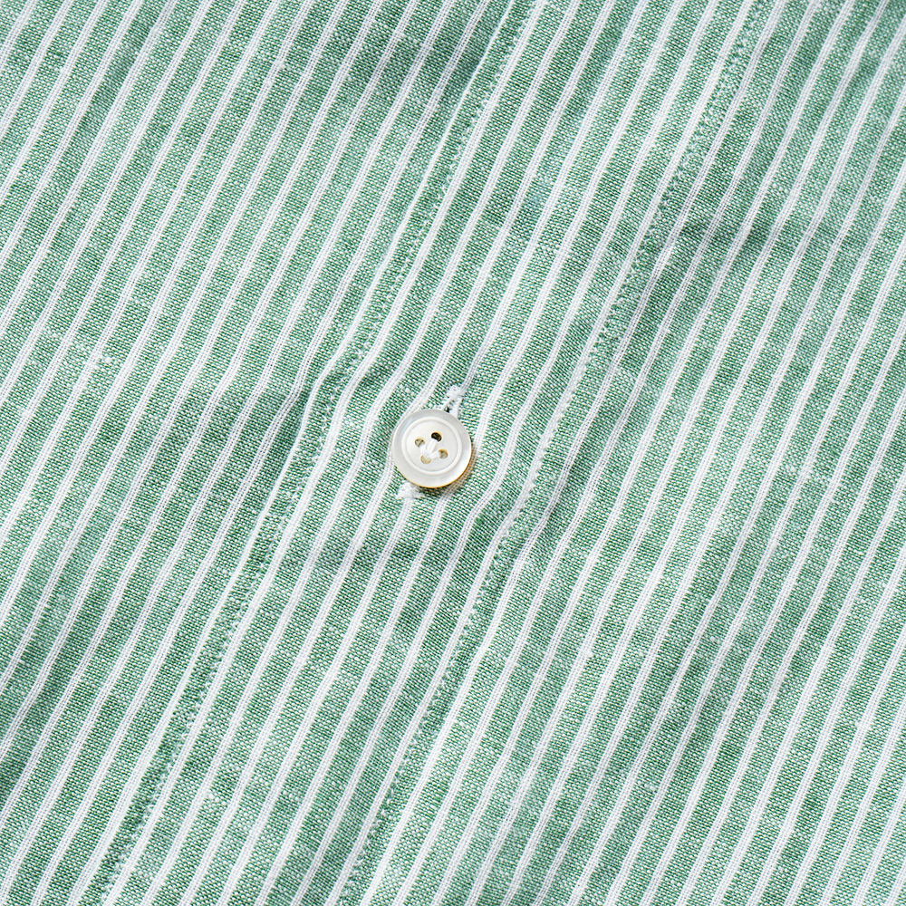 リネンならではの風合いを生かしたグリーン×ホワイトのストライプ。