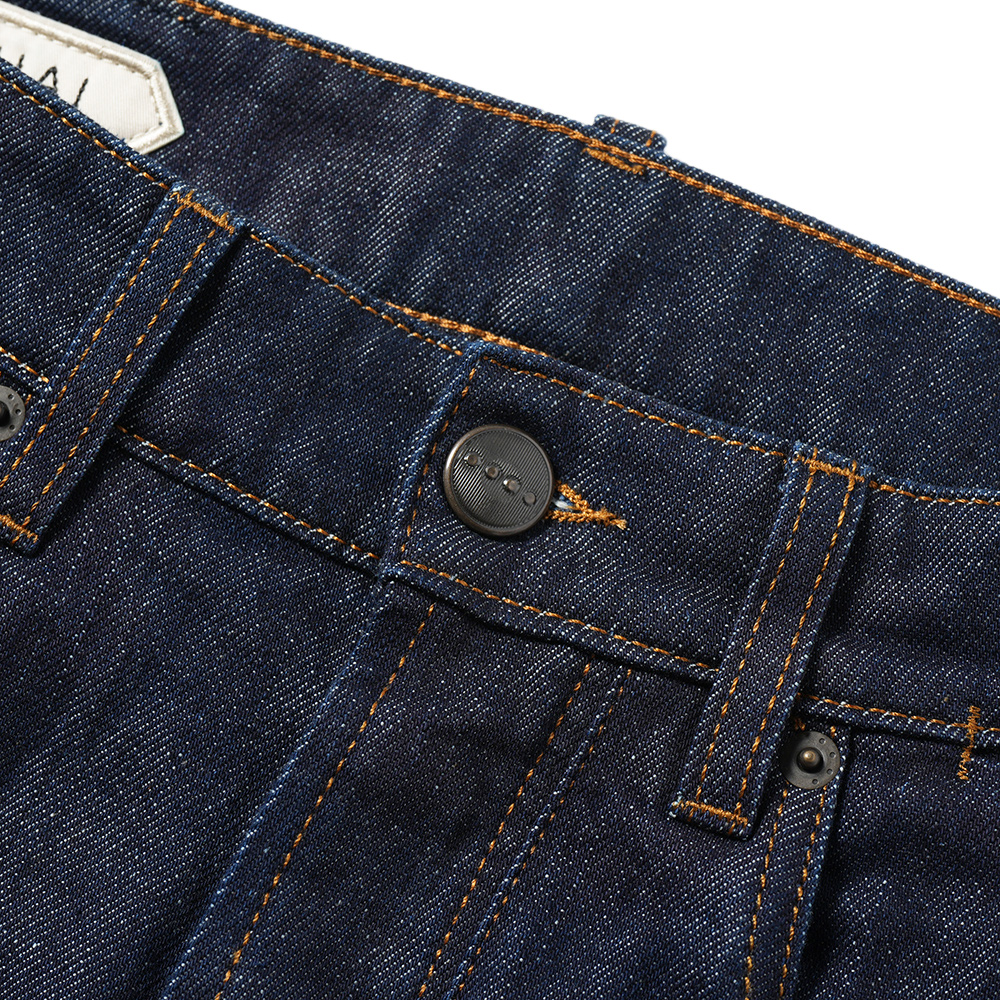 秋冬シーズンということで、色落ちのないワンウォッシュをセレクト。