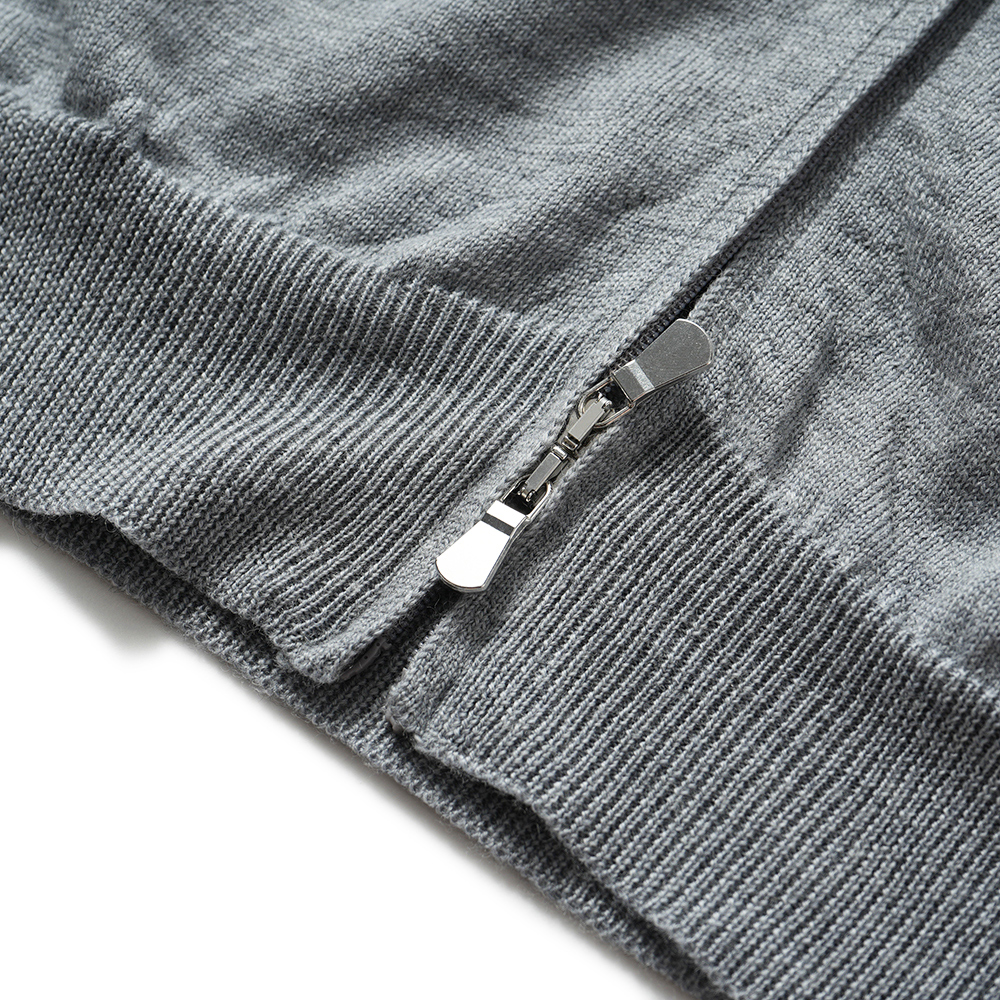 グランサッソのメリノウール12ゲージニットのジップアップブルゾン。