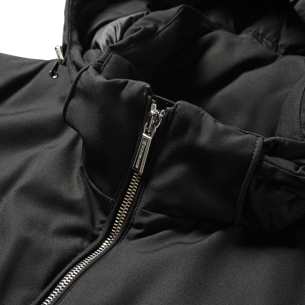 非常にすっきりと、クリーンな表情で、軽量なフーデッドダウンブルゾン”ALBINI”。