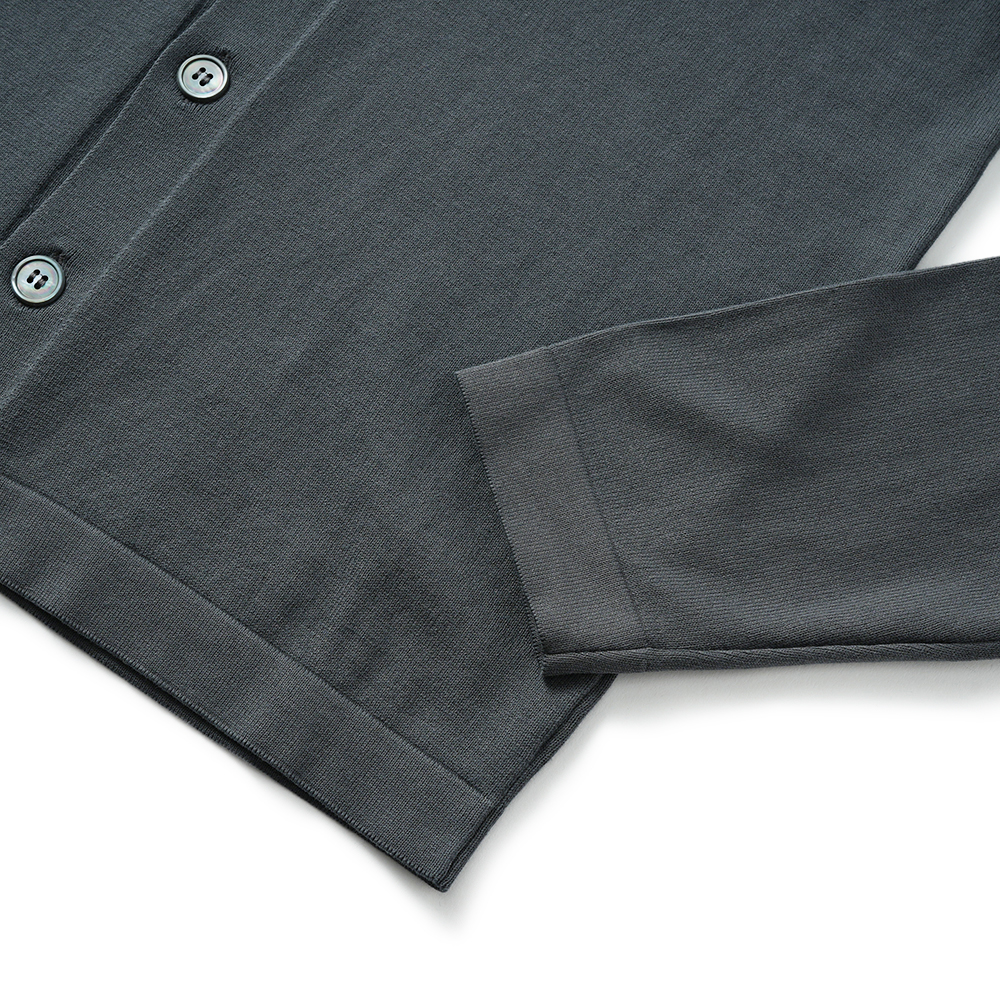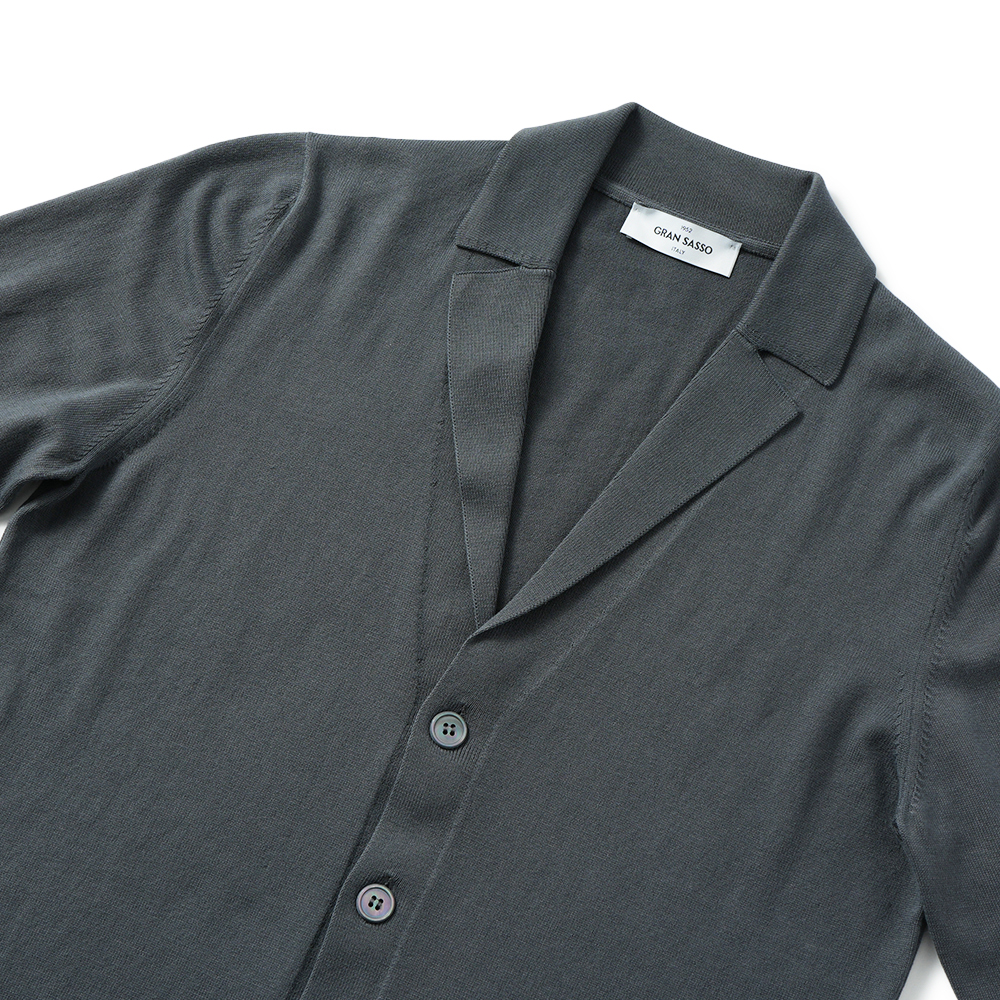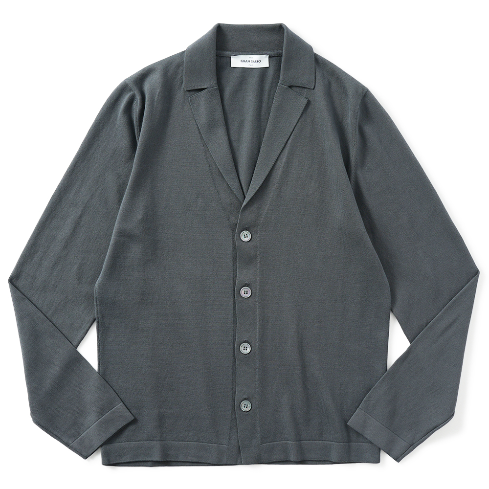 グランサッソ定番人気のソフトコットンを使用したラペル付きカーディガン。