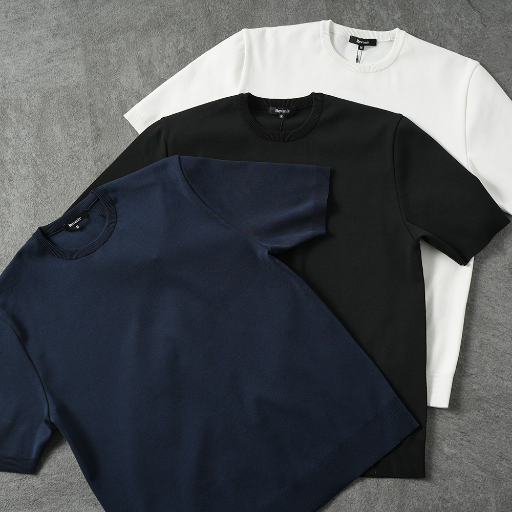 Revenir ウォッシャブル コットン・ポリエステル ニット クルーネック S/S Tシャツ INT-009【新入荷】