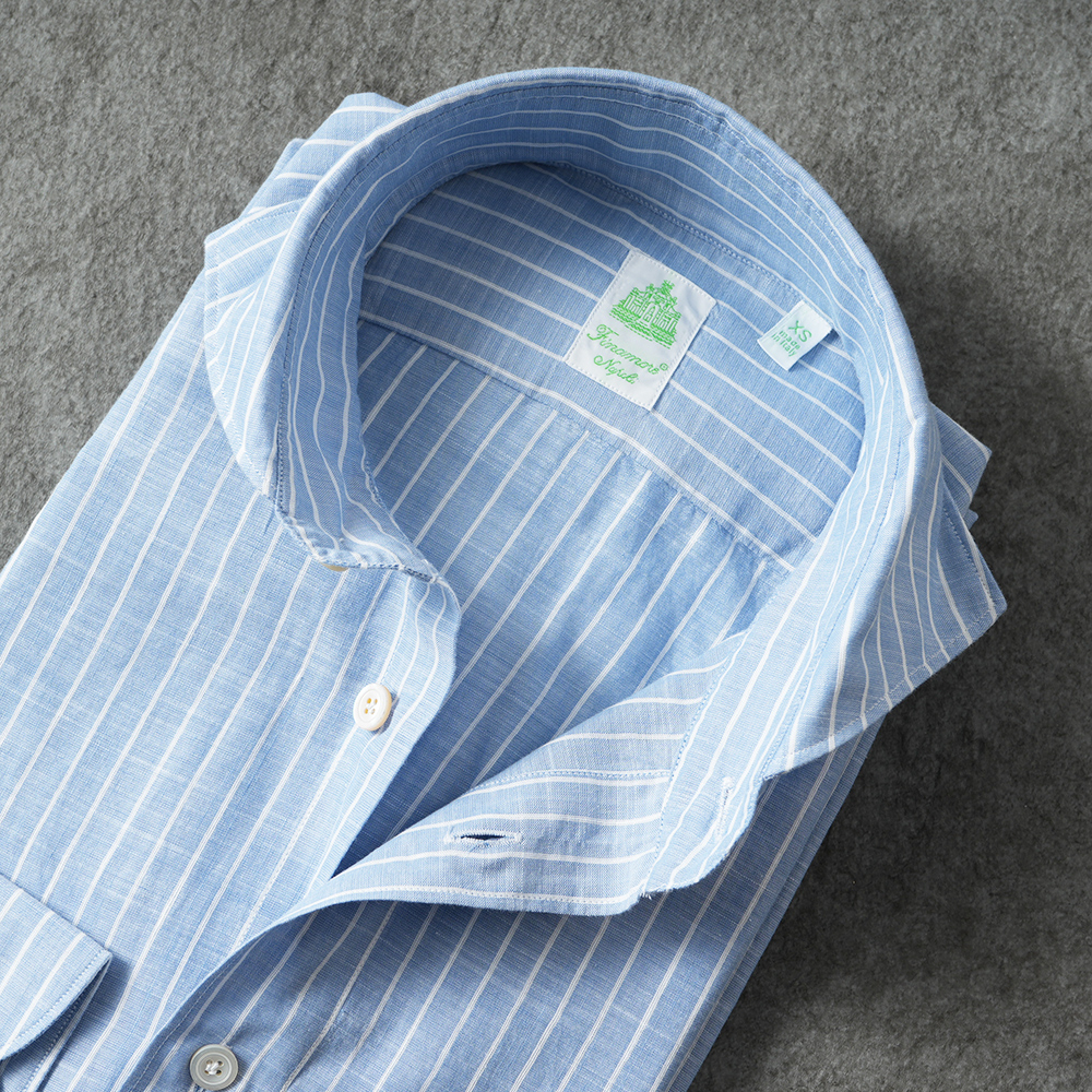 Finamore SERGIO BARI/460147 C0624 コットン ストライプ カッタウェイカラーシャツ【新入荷】
