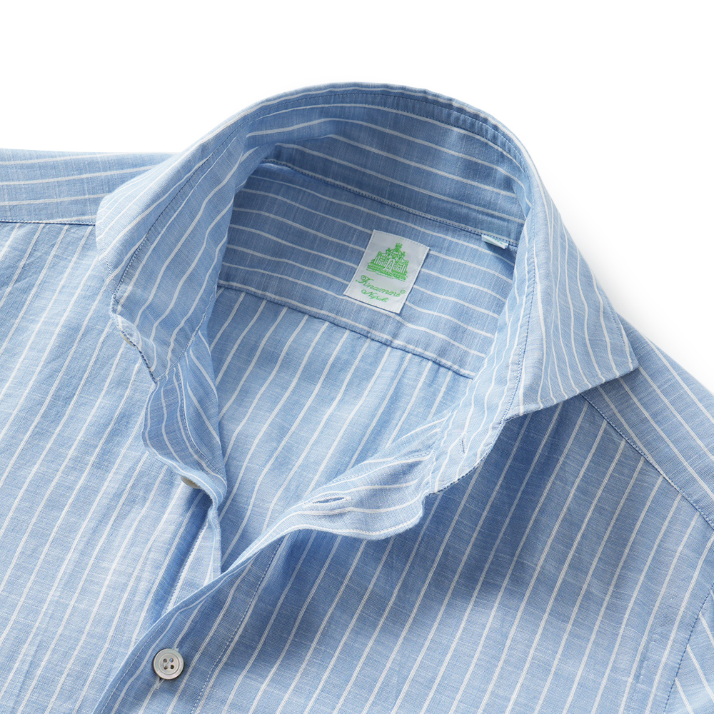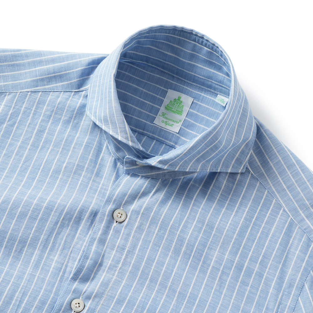 Finamore SERGIO BARI/046108 M0655 コットン・リネン ストライプ カッタウェイカラーシャツ【新入荷】