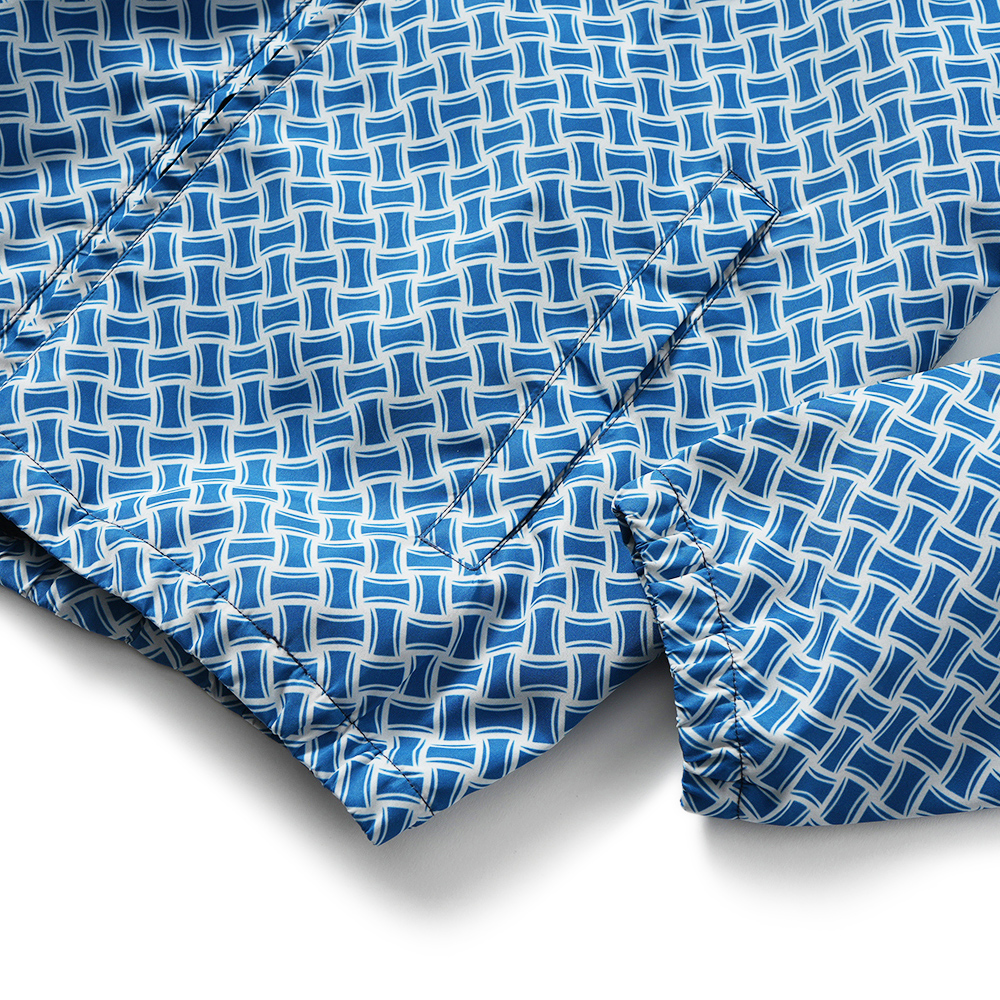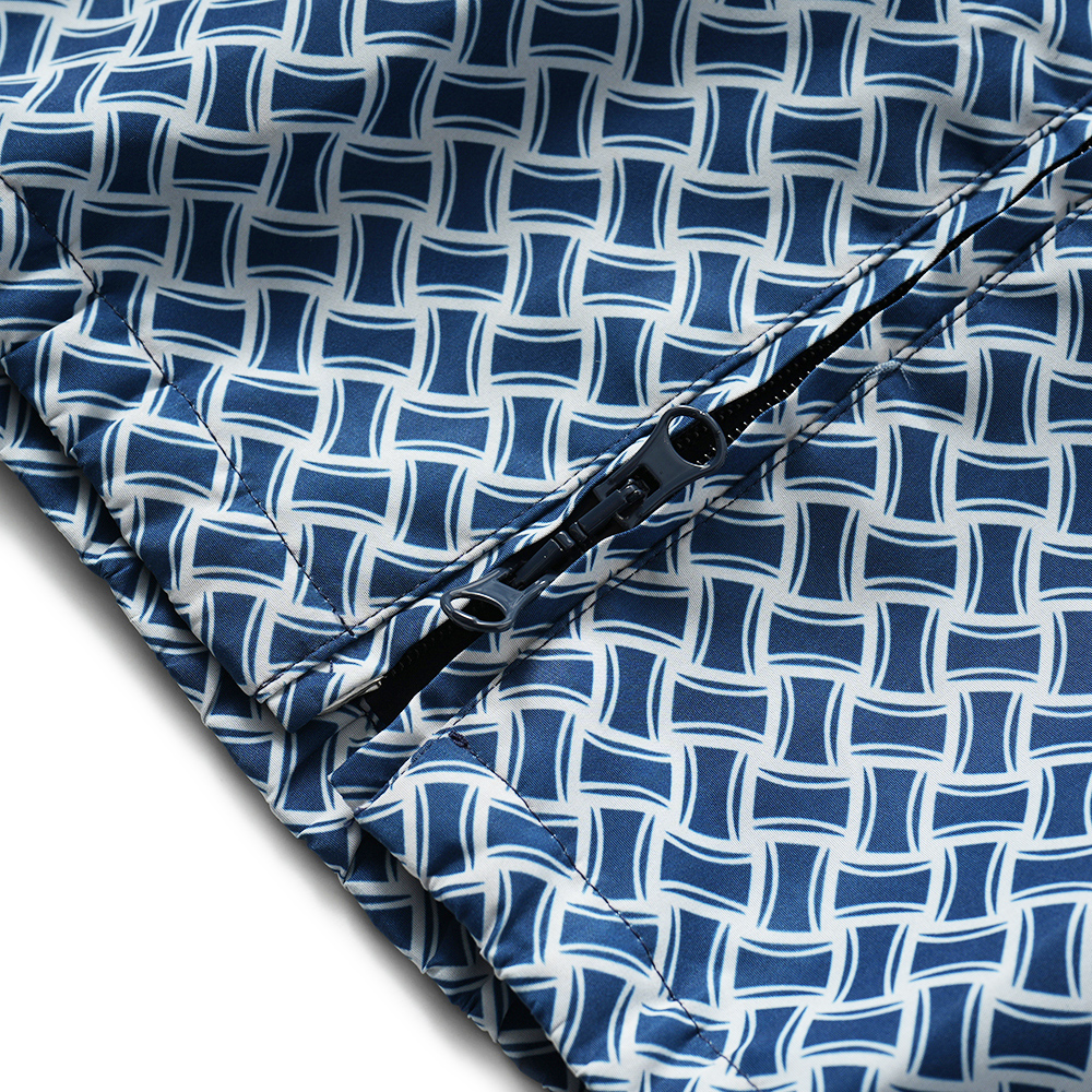 高密度に打ち込まれたポリエステル生地に、ドルモアのアイコンでもあるビスコッティ柄をあしらい、ドルモアとわかるアイコニックなデザイン。