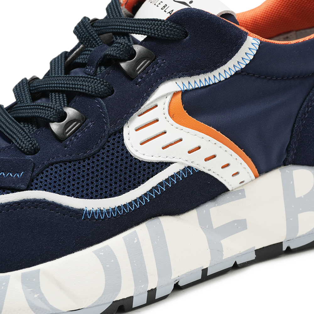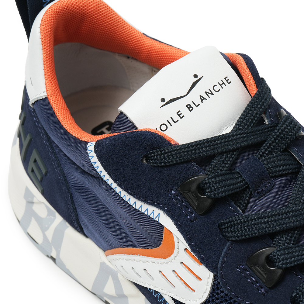所々にあしらったオレンジがネイビーの中でよく映えるアクセントの効いたカラーリングです。