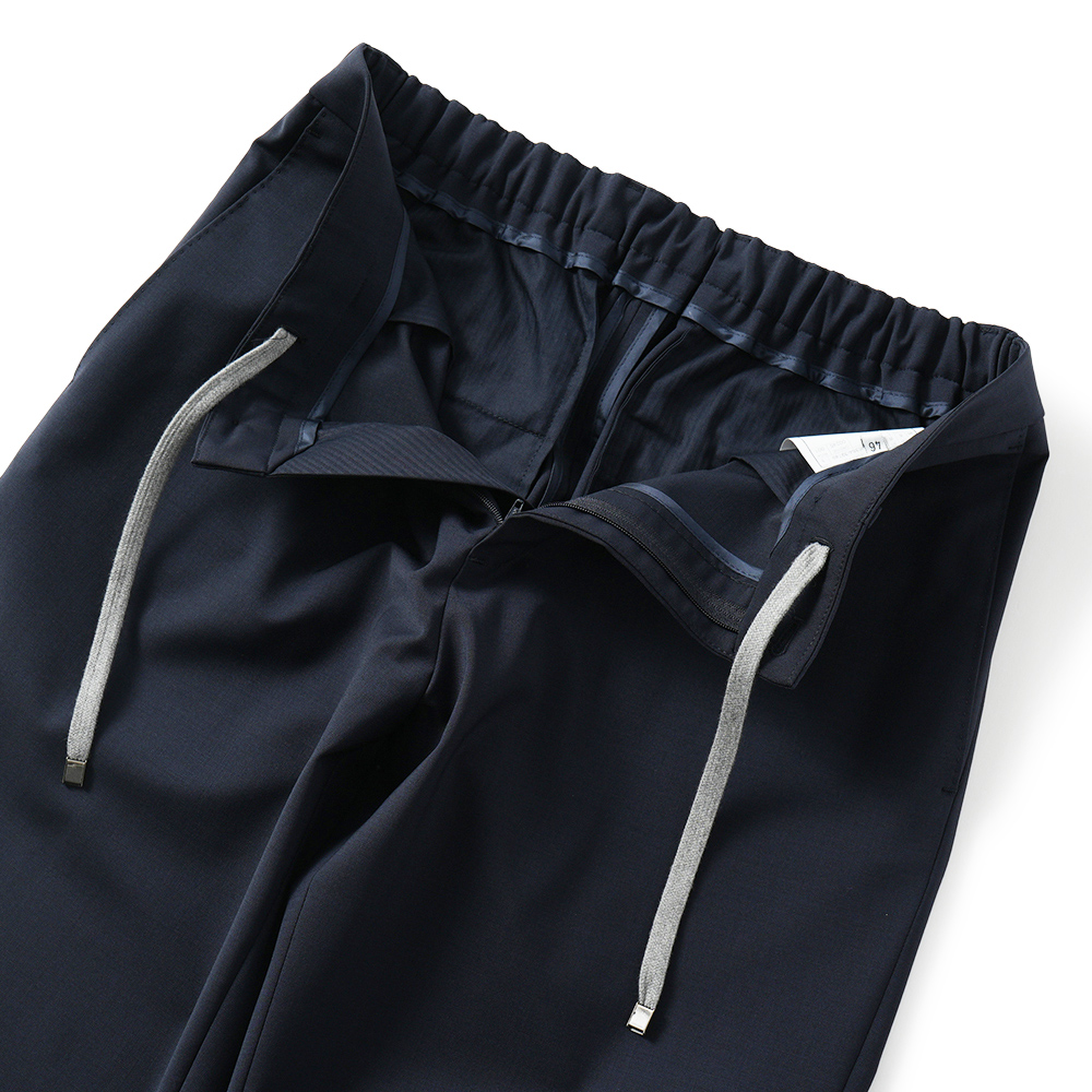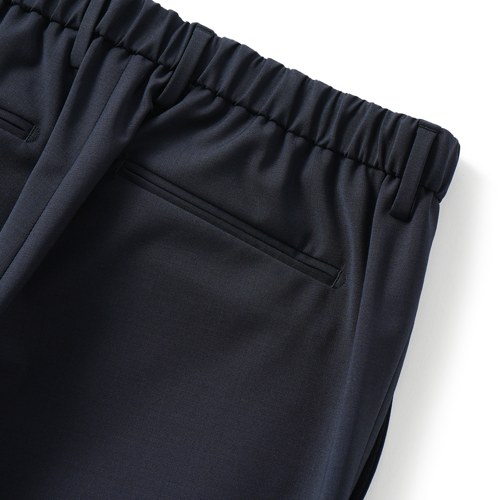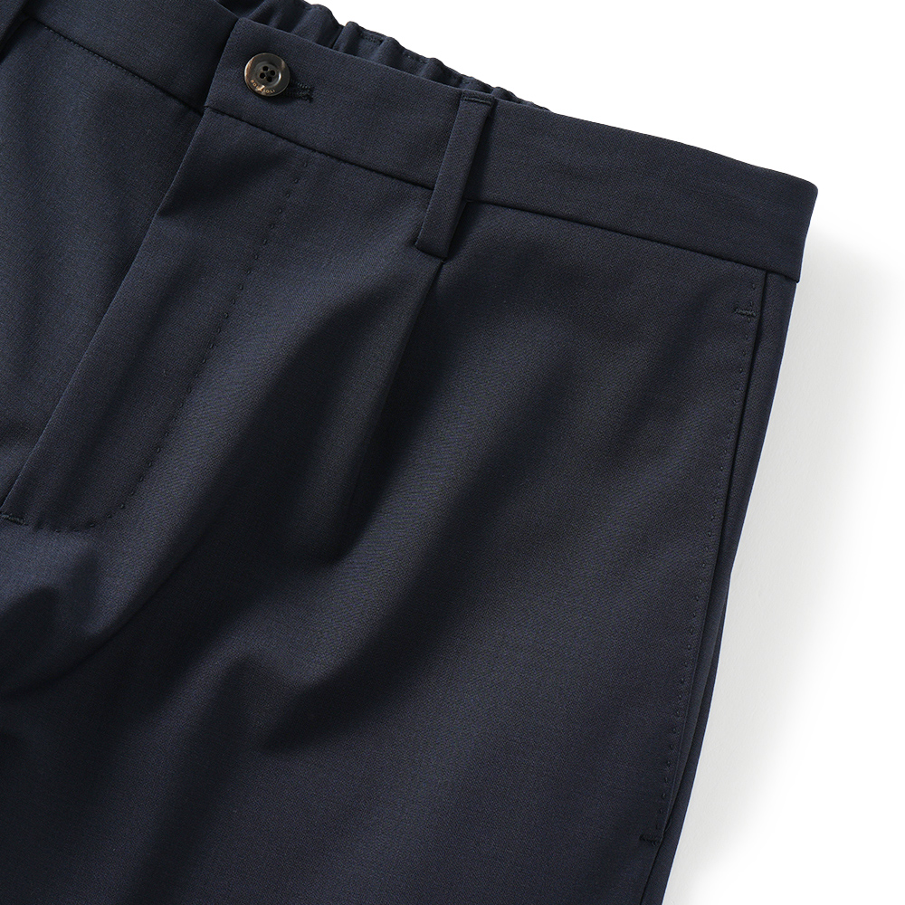 ウール・ポリエステル・ポリウレタンのブレンドによるストレッチ性、防シワ性のあるテクニカルなファブリックを採用しています。