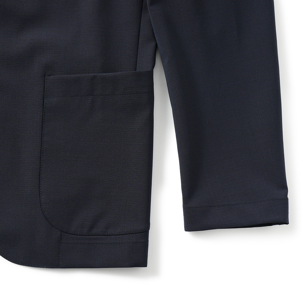 ブランドのアイコンモデル"DOVER(ドーバー)をベースに袖は筒袖、ラペル部分の接着芯、胸ポケットなしと仕立ての軽さを追及したEMPTY JACKET。