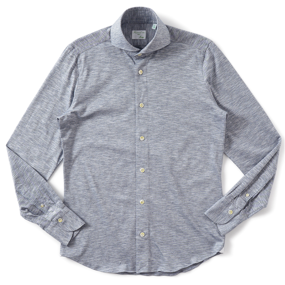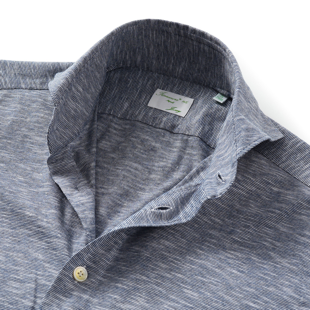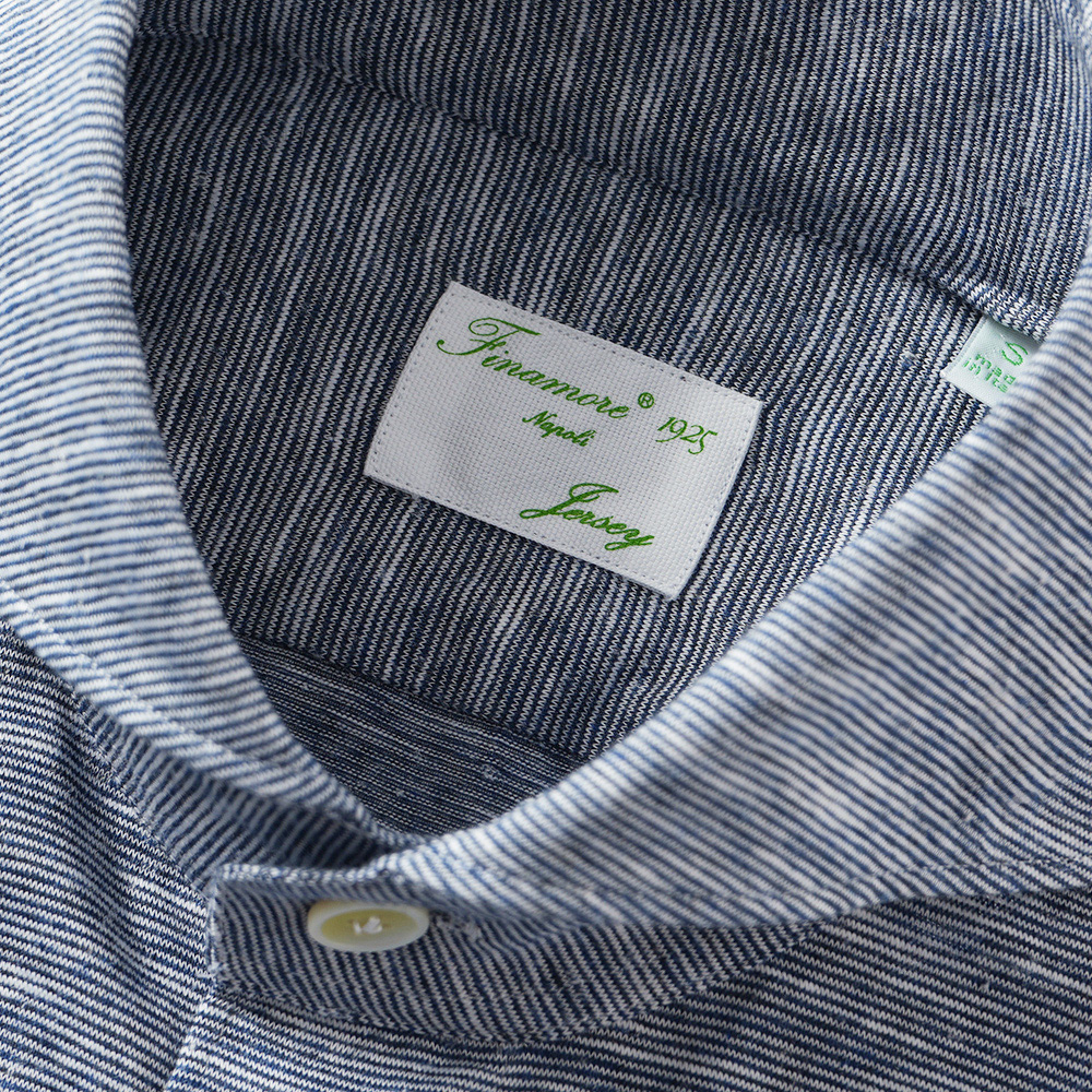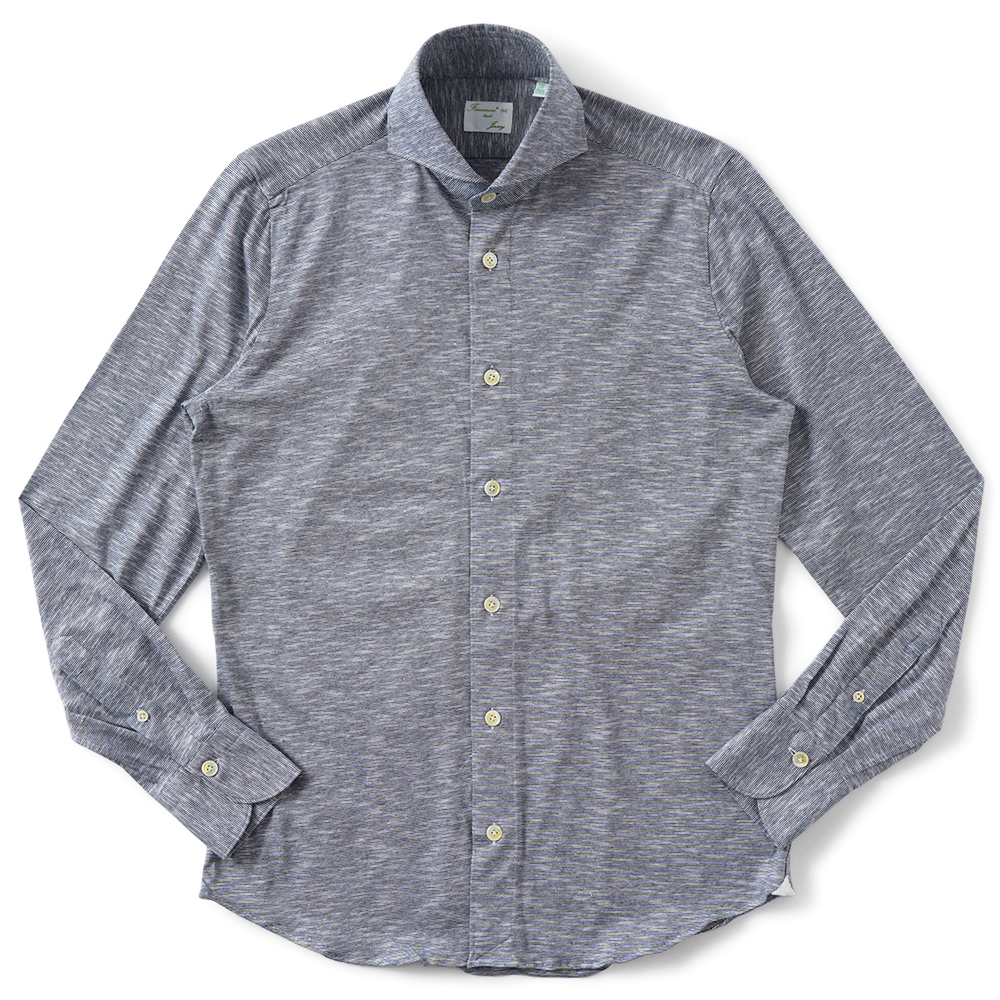 Finamore SERGIO DENVER/180070 M0652J コットン・レーヨン・ヘンプ ジャージ ボーダー カッタウェイカラーシャツ【新入荷】