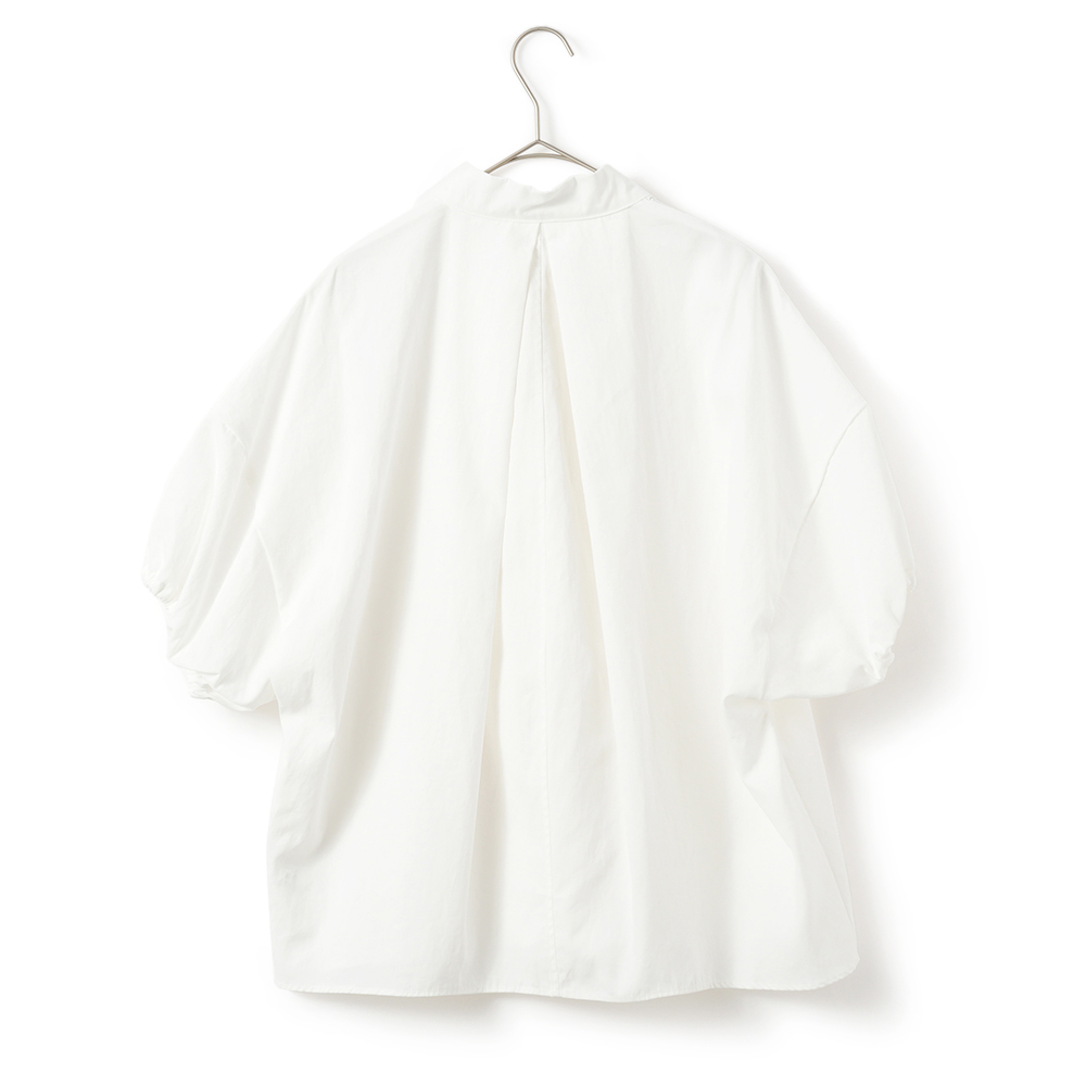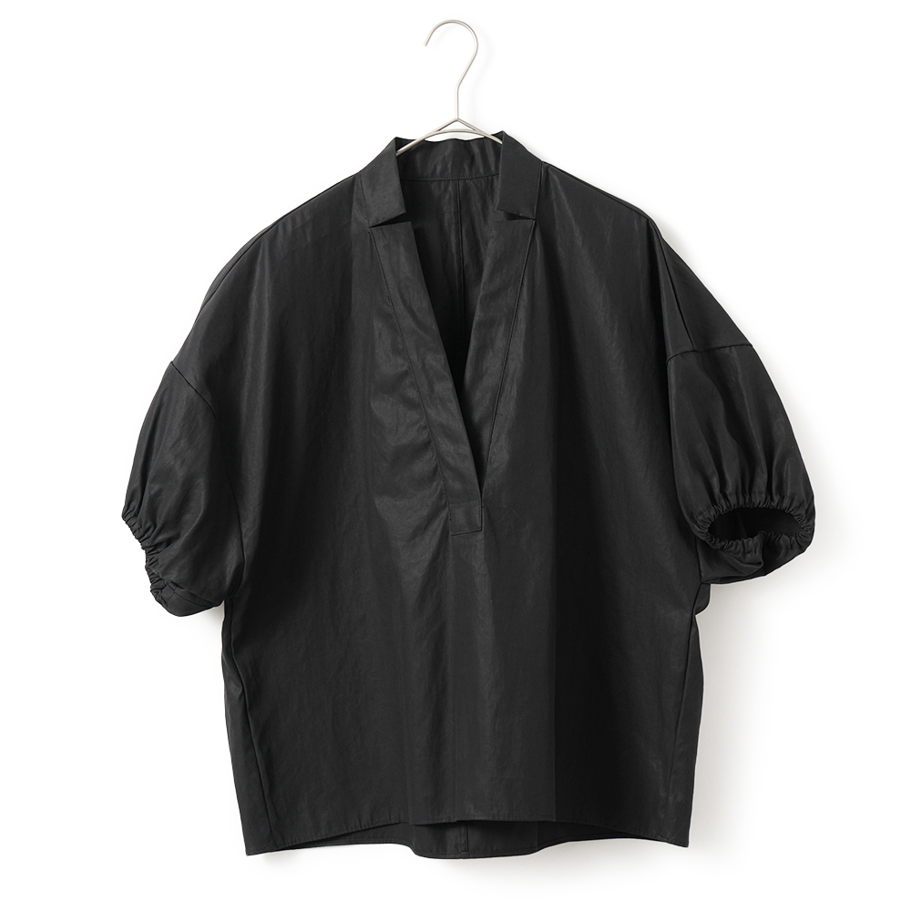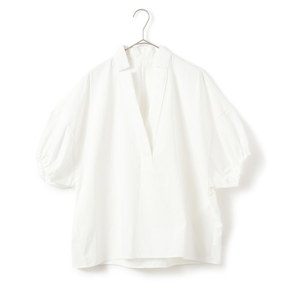 袖口にギャザーを施したスキッパーシャツ。