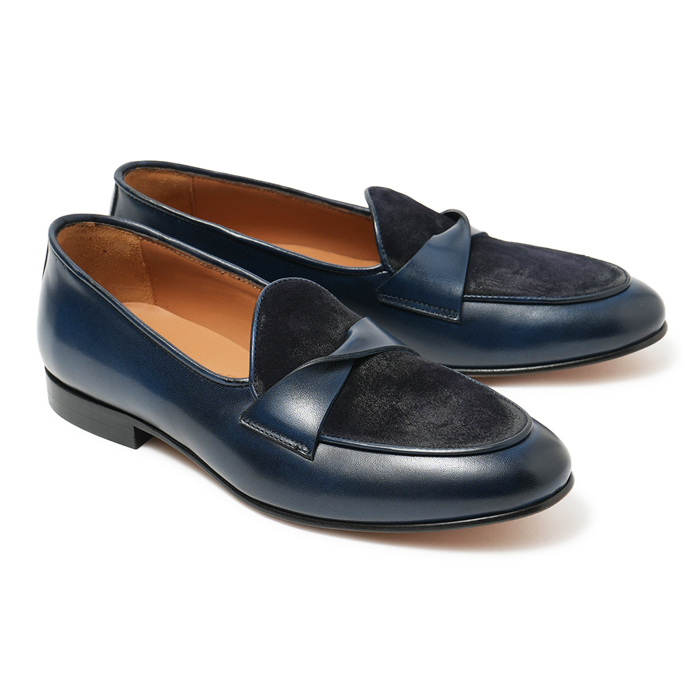 IL MOCASSINO カーフ×スエード リボンサドル ベルジャンシューズ BOLGHERI 06【新入荷】