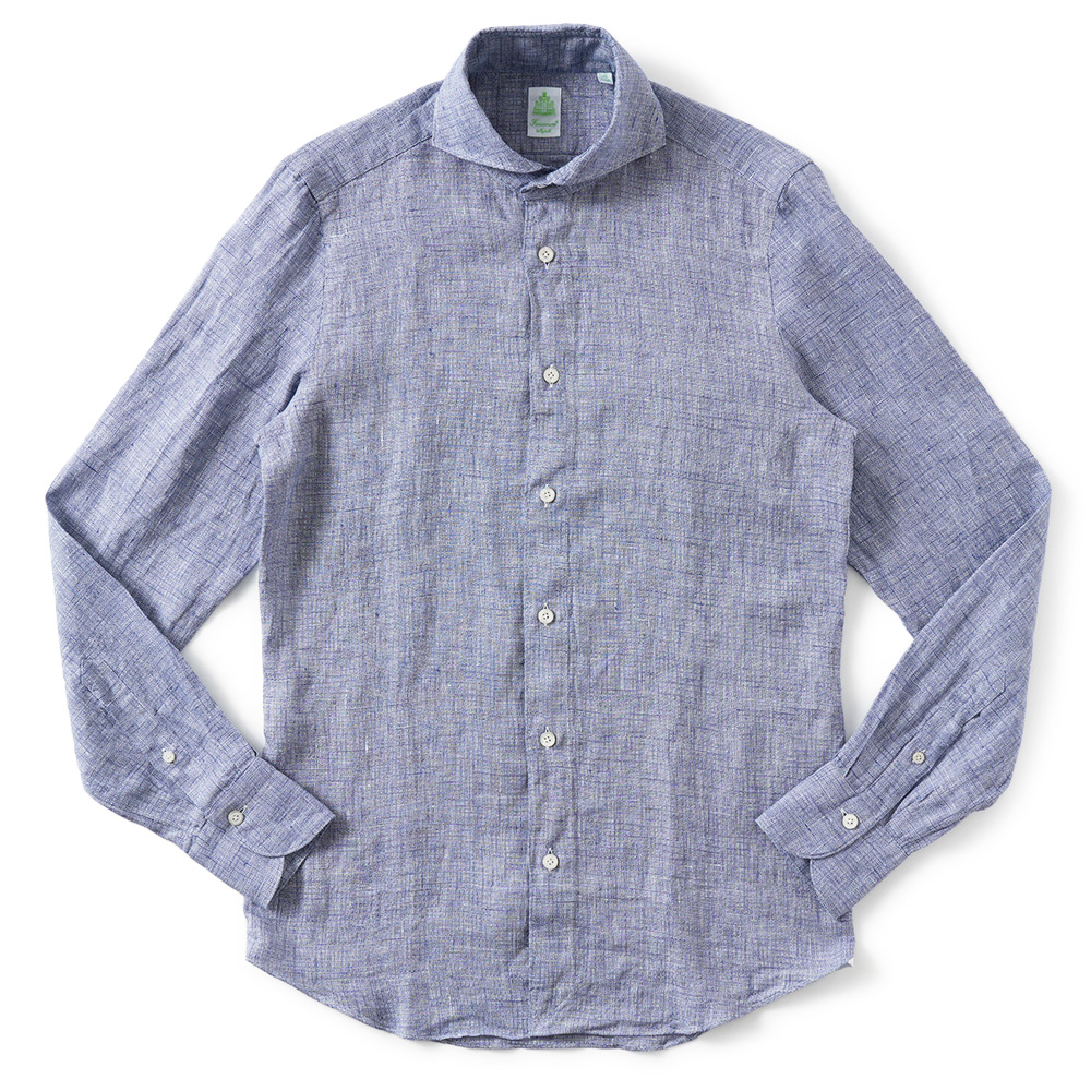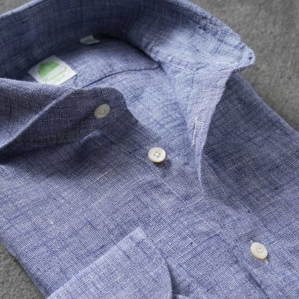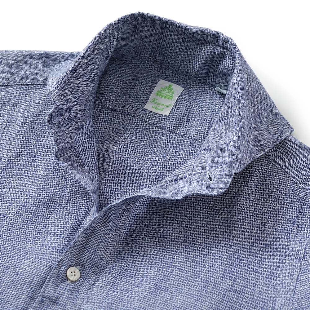 Finamore SERGIO BARI/012305 M0081 リネン スクエアパターン カッタウェイカラーシャツ【新入荷】