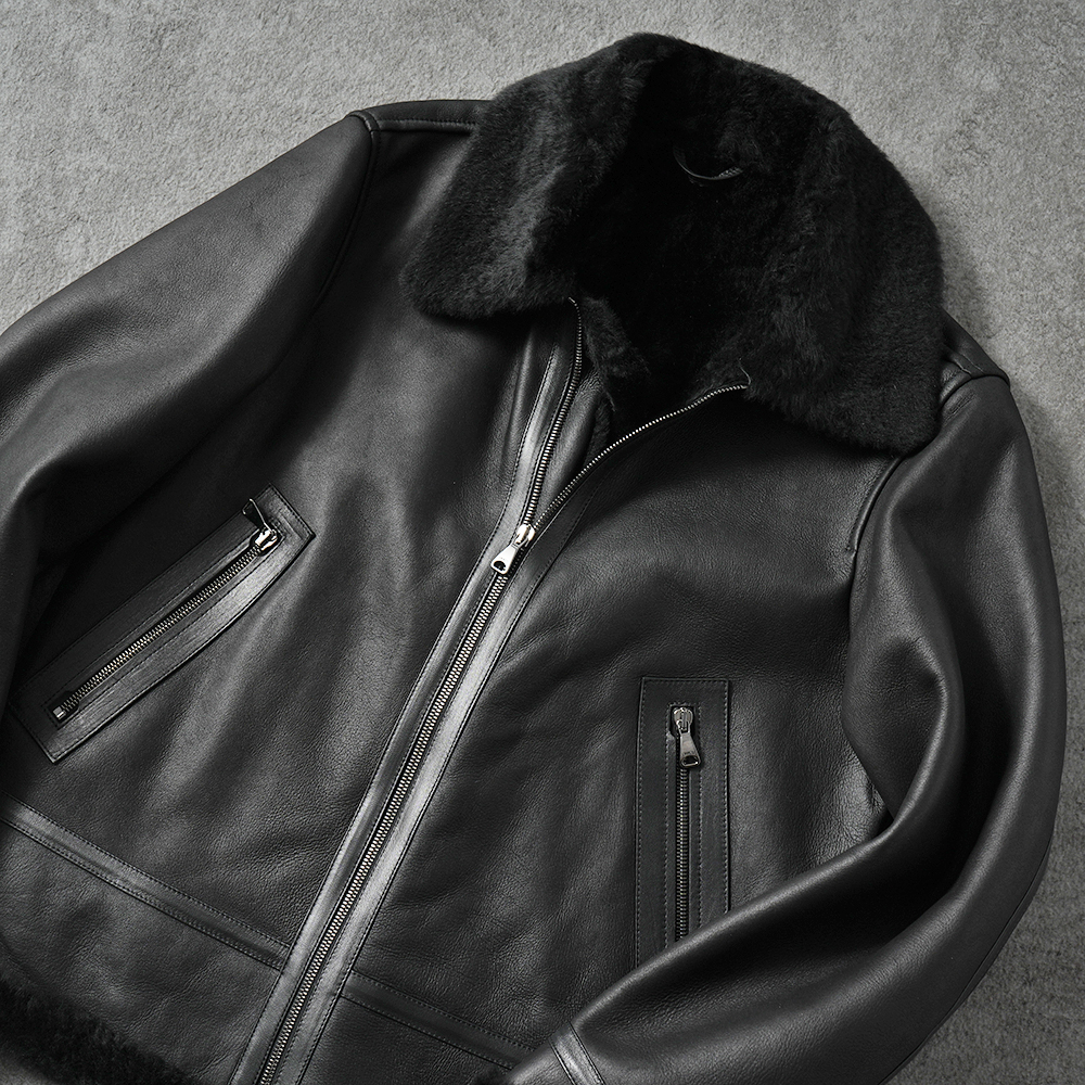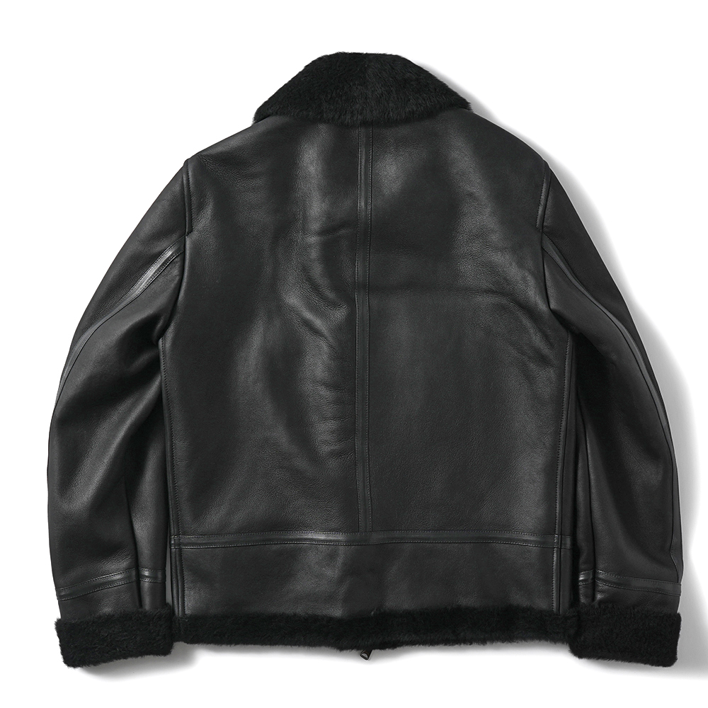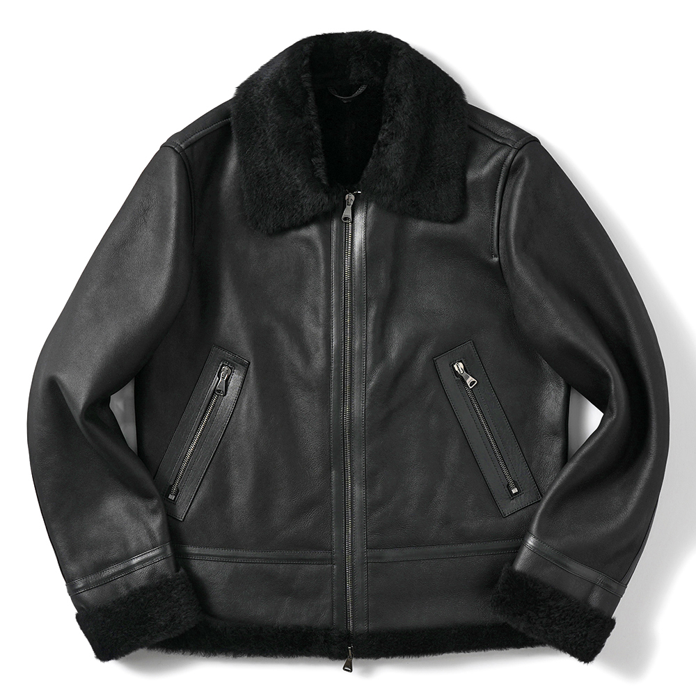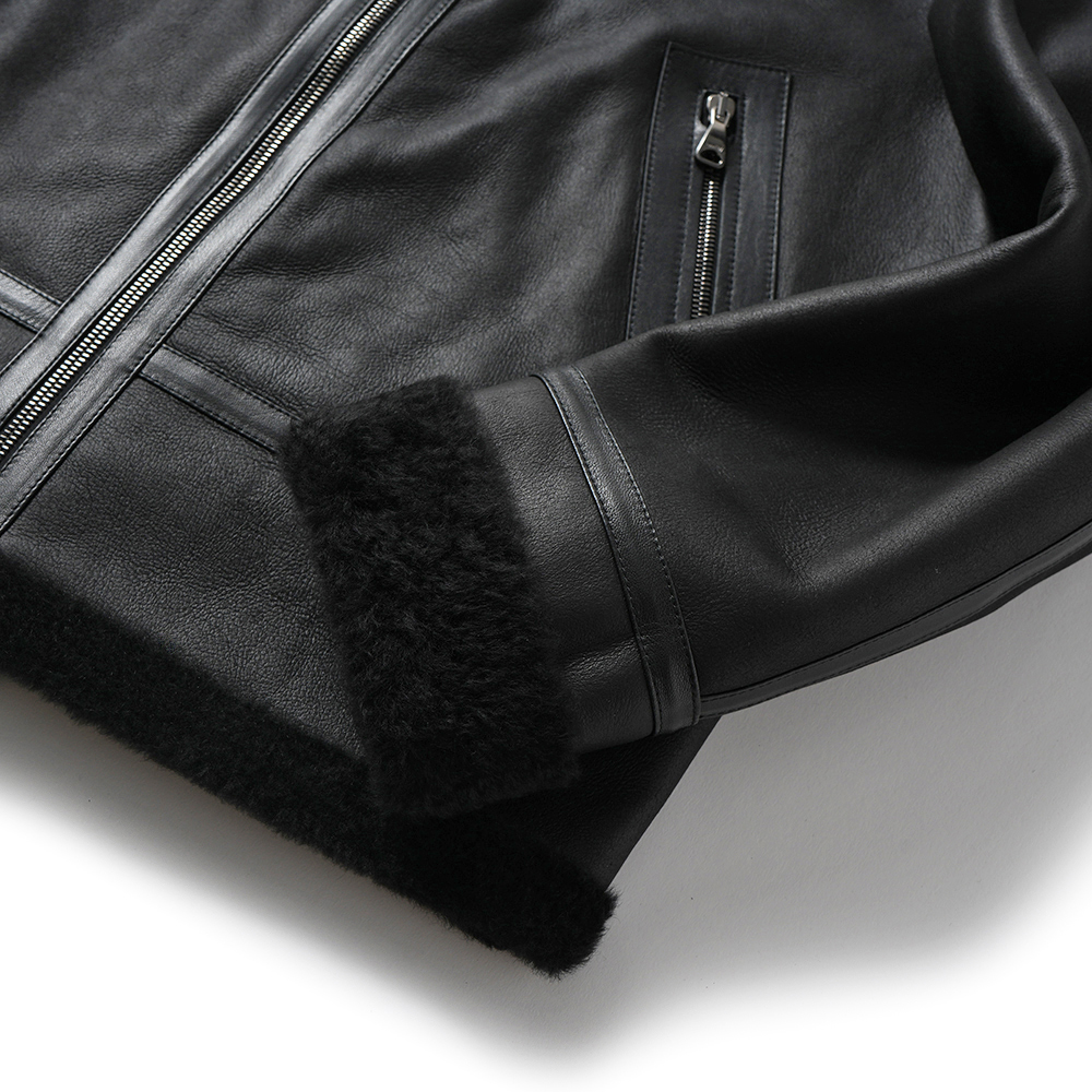 ミリタリーの定番、B-3ジャケットをベースに、すっきりとしたシンプルなデザインで仕上げたムートンフライトジャケット。