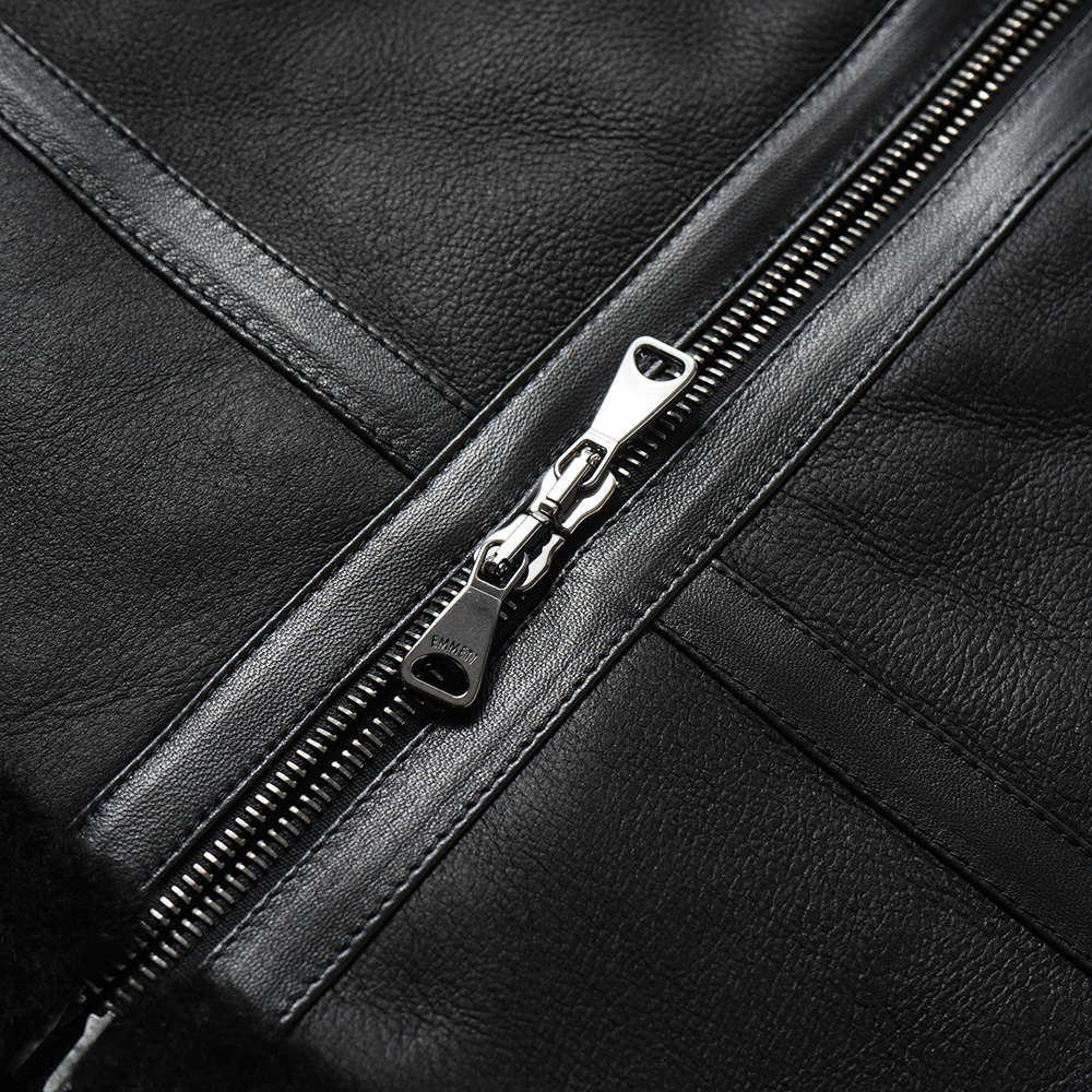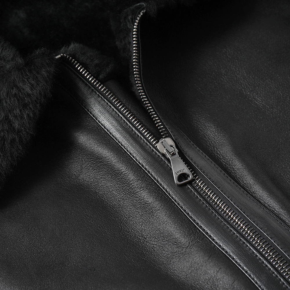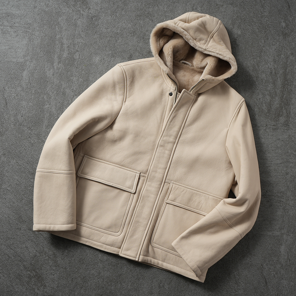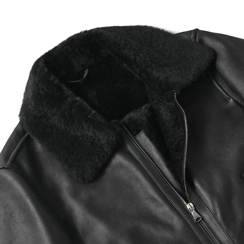 ミリタリーの定番、B-3ジャケットをベースに、すっきりとしたシンプルなデザインで仕上げたムートンフライトジャケット。