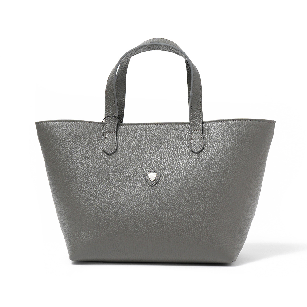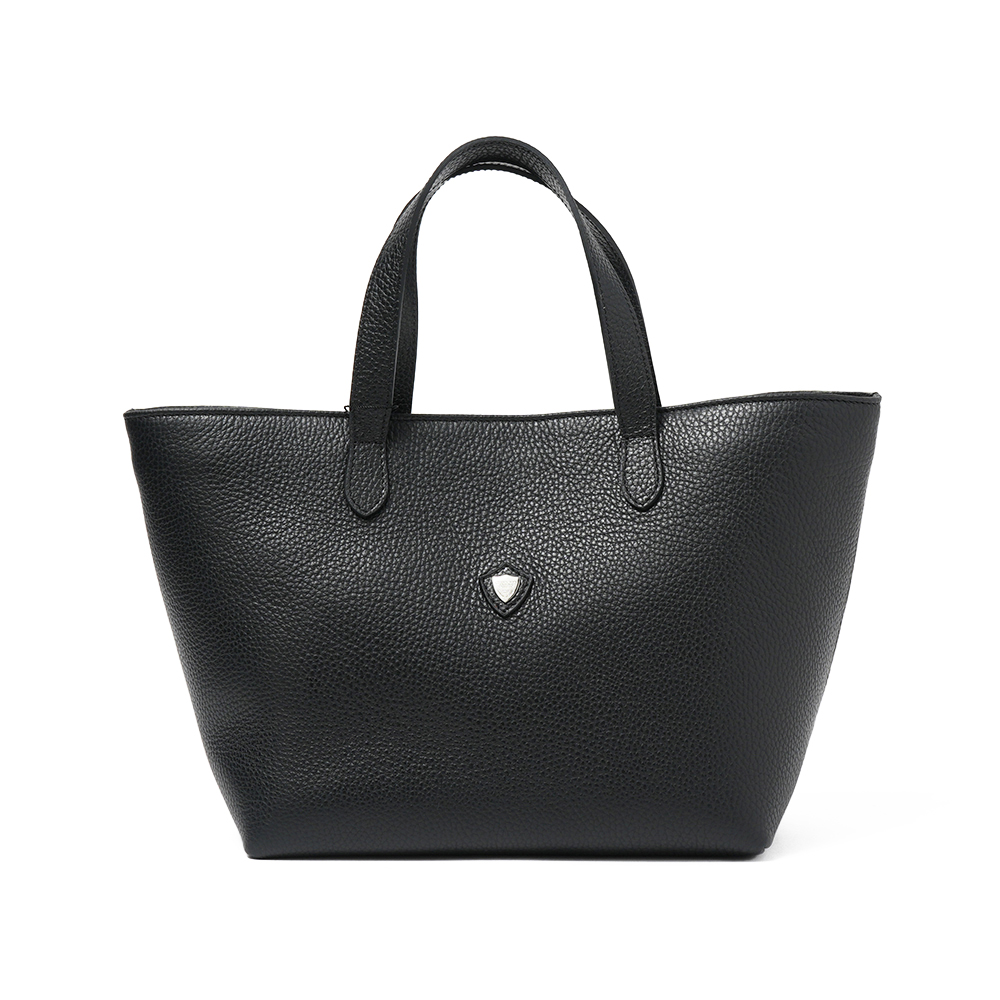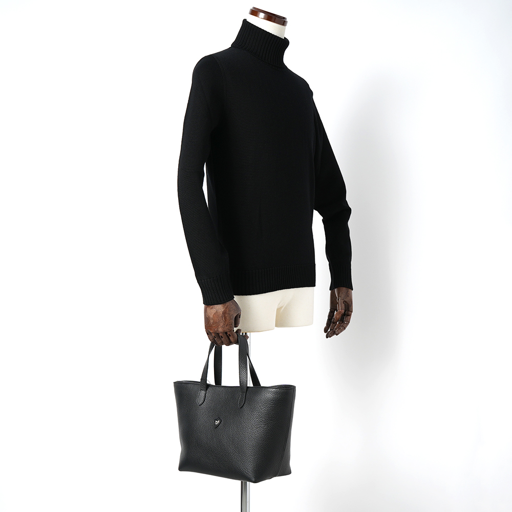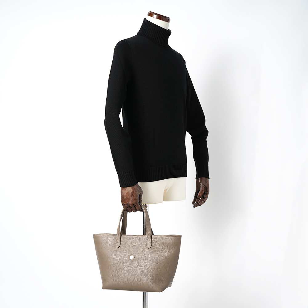 シンプルなスモールトートは休日のちょっとしたお出かけに最適。