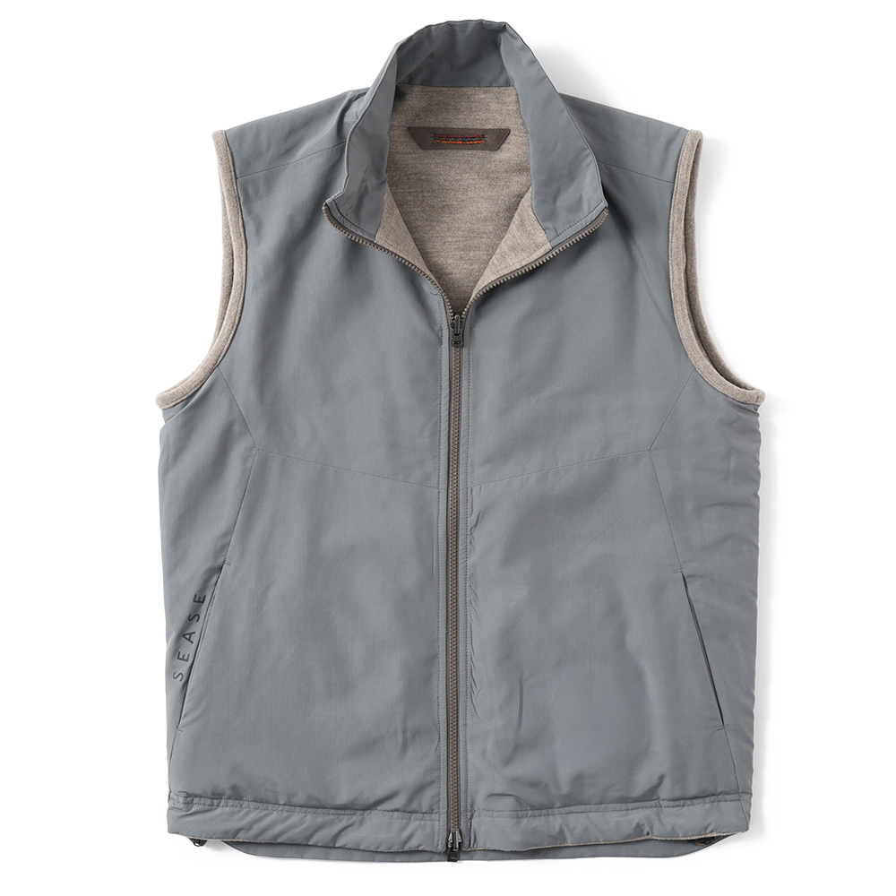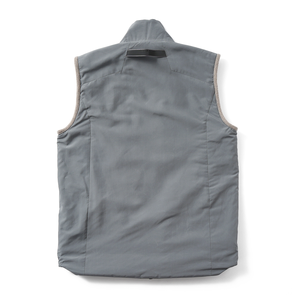 2種類の異なる生地で完全にリバーシブルとなるベストは、時や場所を選ばずに使える汎用性の高いのアイテムです。