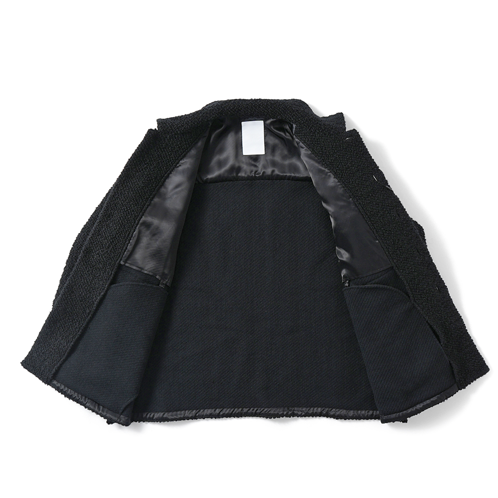 ロービング糸ならではの表面の凹凸感が特徴で、ナイロンの高発色性が組み合わさることで、生地に立体感と美しい陰影が生まれています。