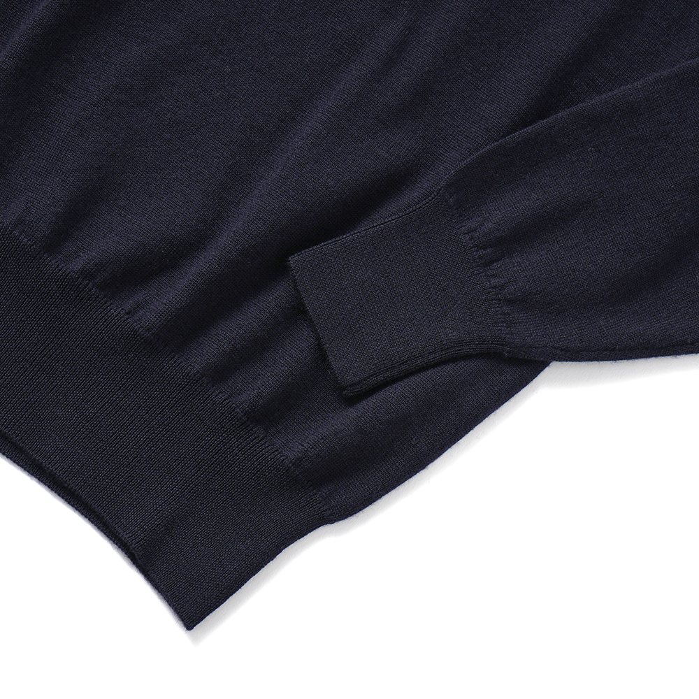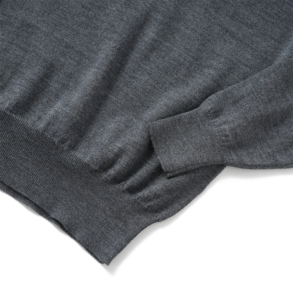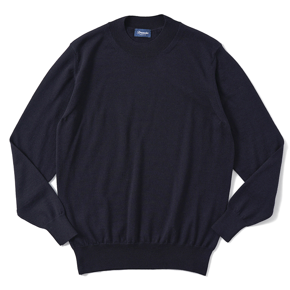 モックネックよりも低く設定され、少し幅のあるネックリブが微差を生んでくれるニットです。