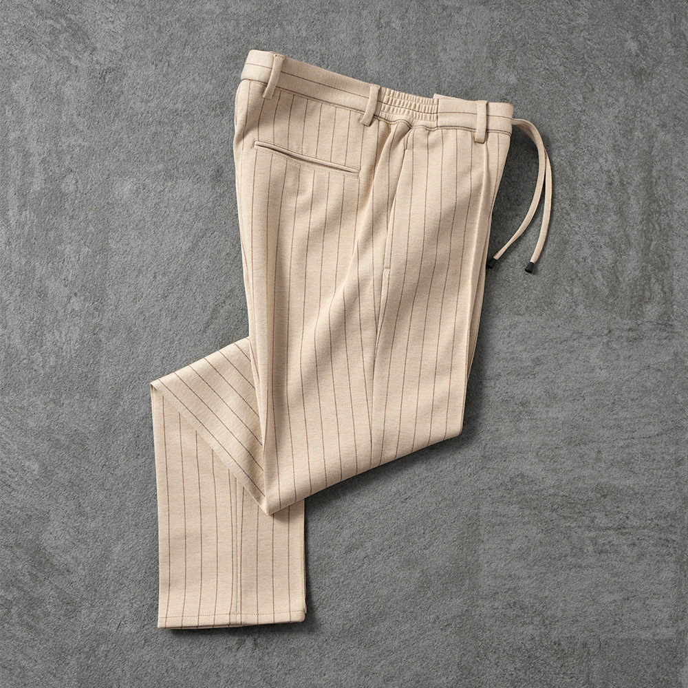 ダブル編みでパンツに適度なハリを与え、ドレッシーでありながら楽ちんな素材です。
