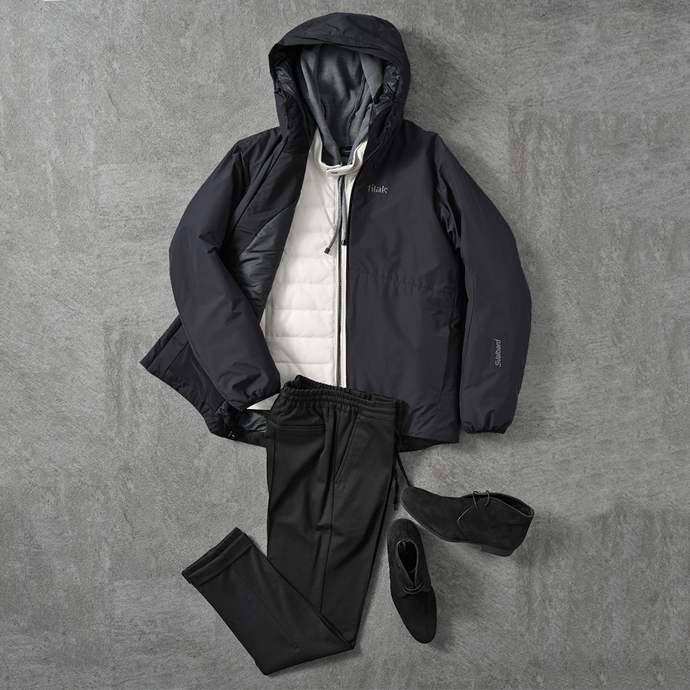 予測できない天候や寒さにも対応します。もちろん足元はスニーカーでも悪くはありませんが、スラリとしたスタイルの足元はWINDにはかないません。