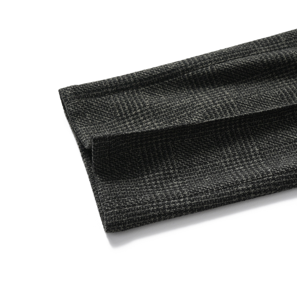 ポリエステルとヴィスコース、ポリウレタン、3種類の糸をミックスし編まれた3者混のシャドーグレンチェック柄ジャージー素材。