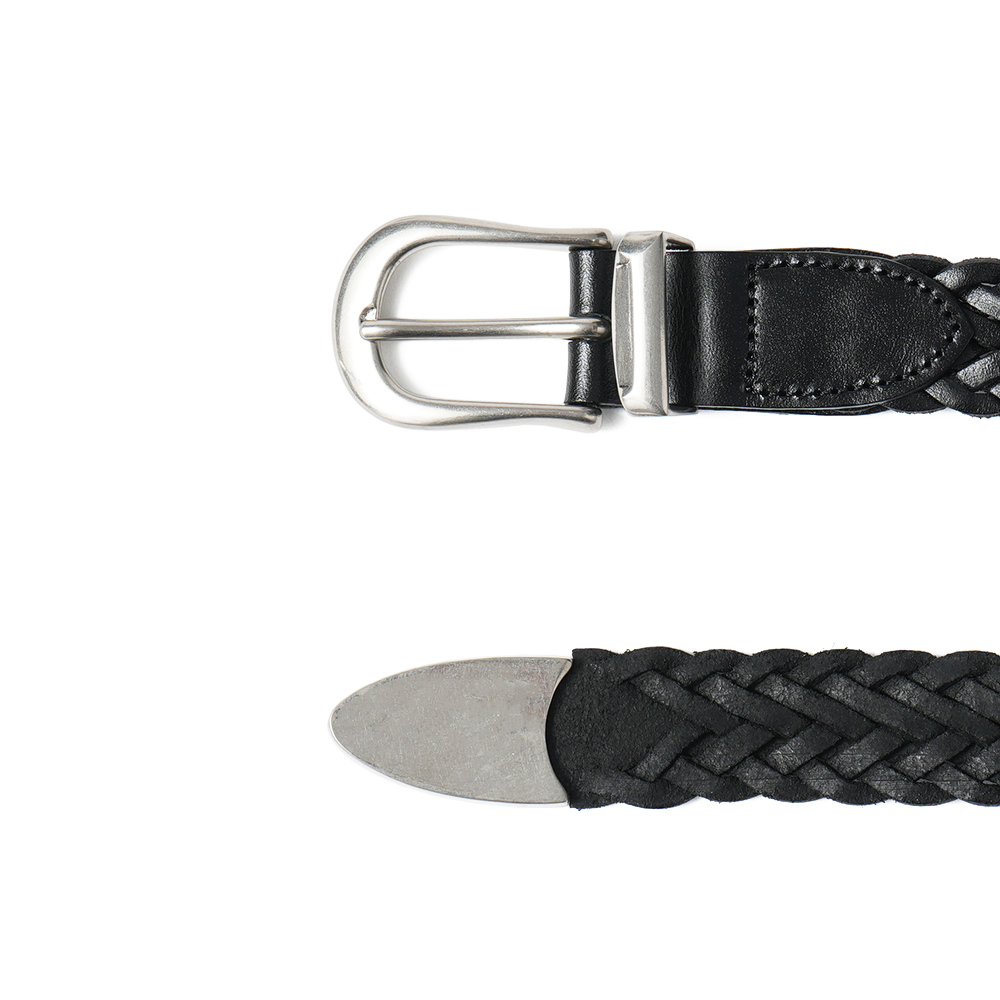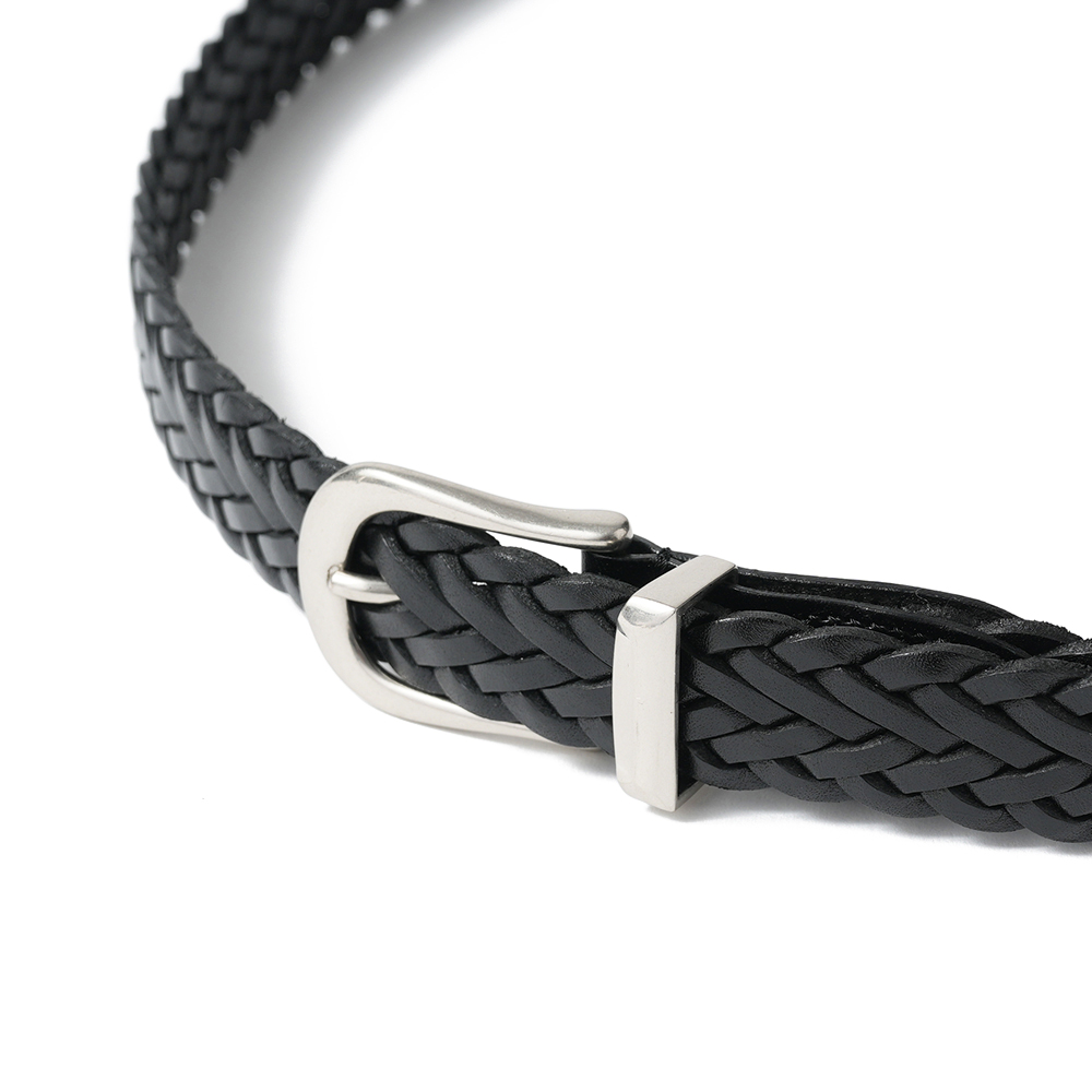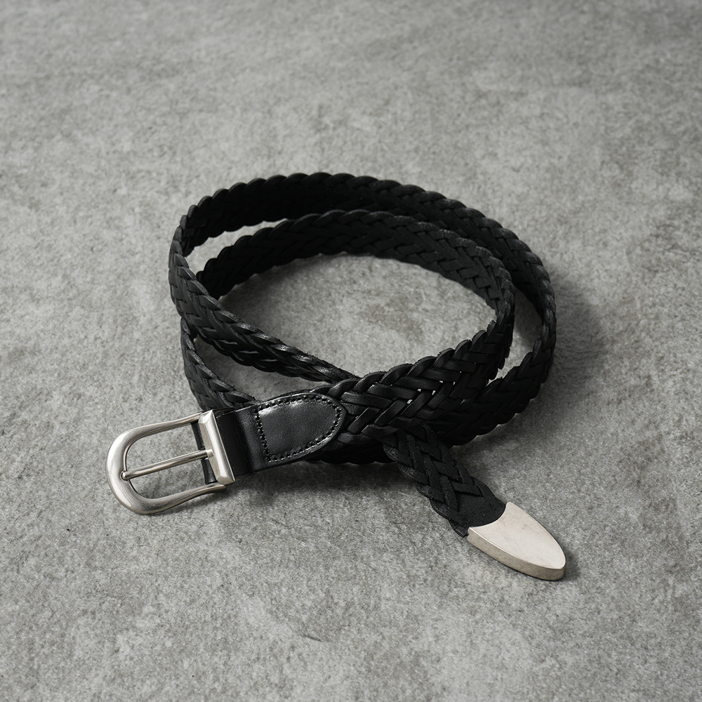 THE SOLE定番のプンターレベルト用に特別に作ったバックルと、熟練の職人が一つ一つ手編みしたレザーメッシュベルトとのコンビネーション。