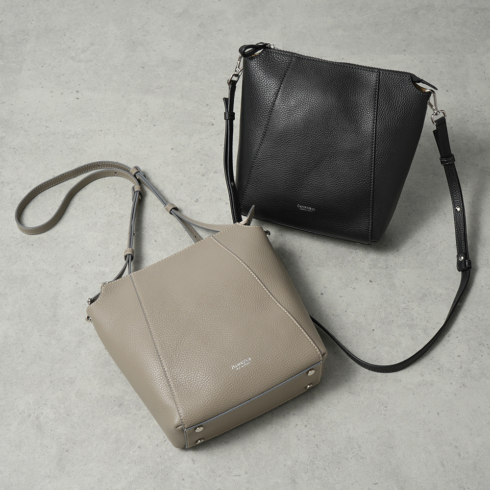 素材はシュリンクレザー「アルチェ」の裏に薄いスウェードを貼り合せた「アルチェ アコピアート」を採用しており、ダブルフェイスにすることで上品なハリ感が生まれ、上品な立体感を際立たせています。