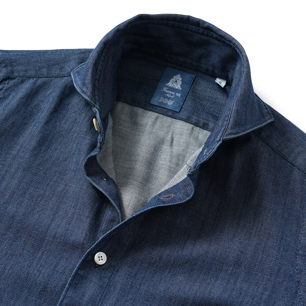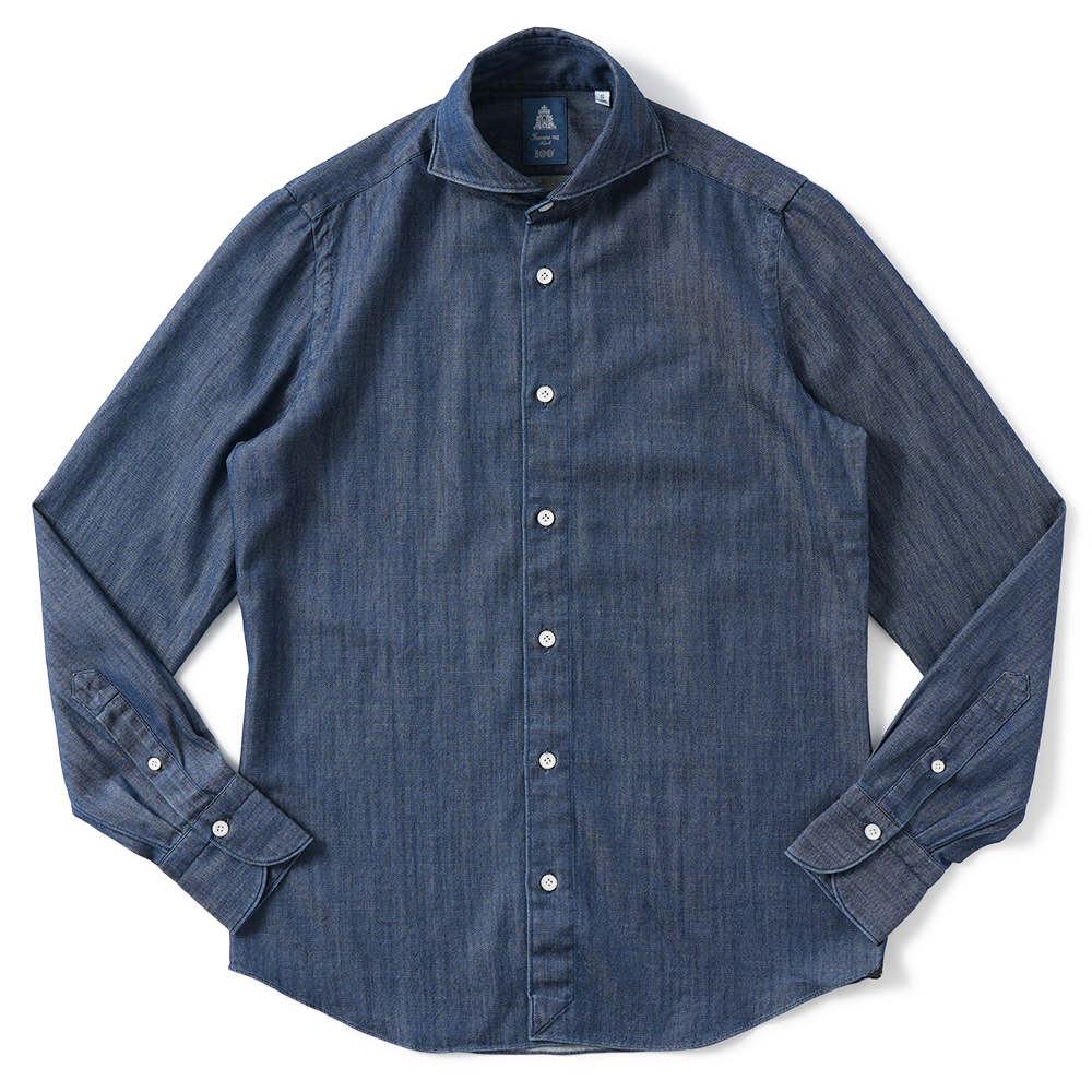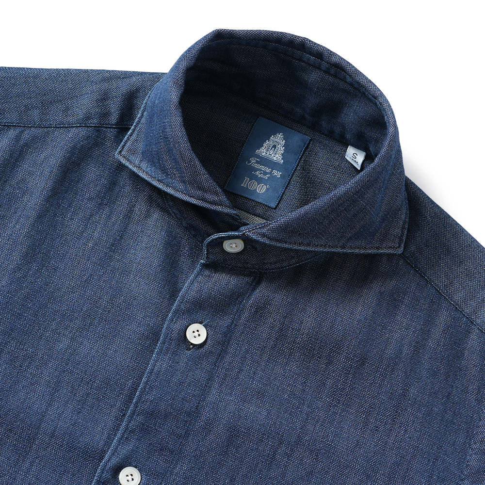 Finamore SERGIO BARI/046277 C0689D コットン インディゴ デニムライク カッタウェイカラーシャツ【新入荷】