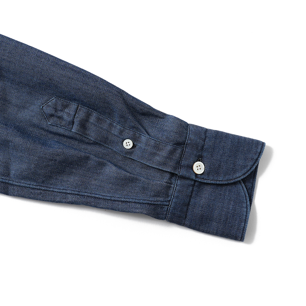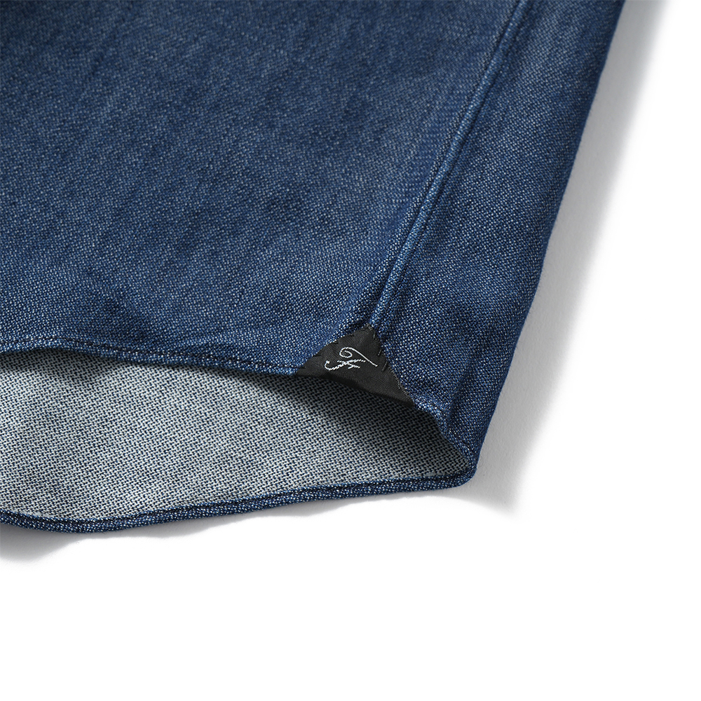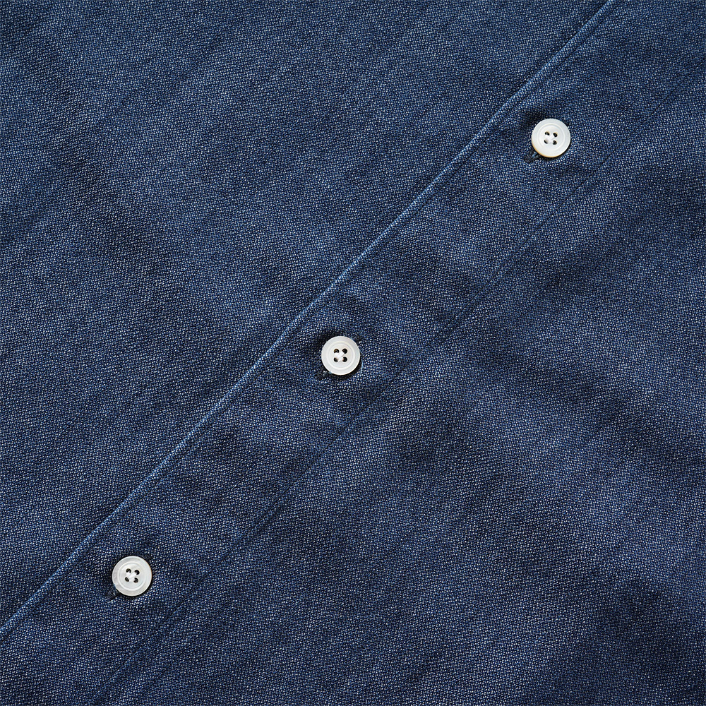 インディゴ染めによる深い色合いのカジュアルシャツ。