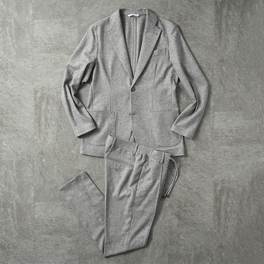 昨日ご紹介したセットアップと同じ”ウォッシャブルシルキーウール”のセットアップ。