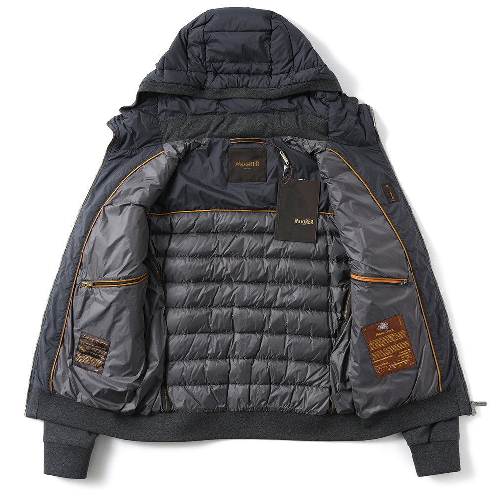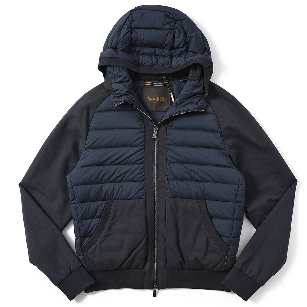 クラス感あるアスリージャースタイルを体現する – MOORER VERUCCI-S3F ヴェルッチ ストレッチナイロン×スウェット コンビネーション フーデッドダウンブルゾン -【新入荷】