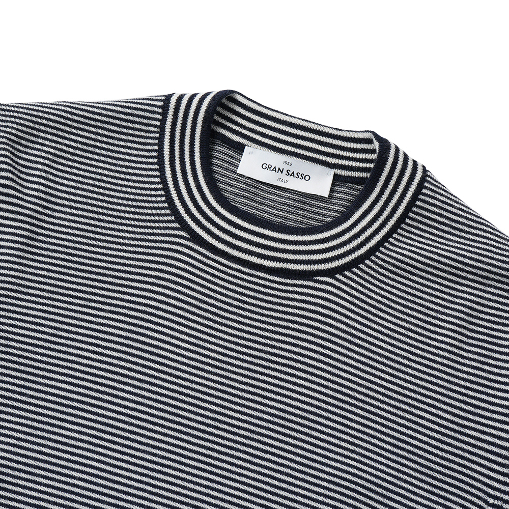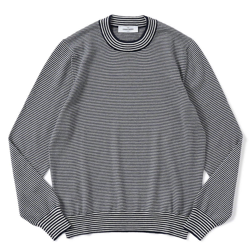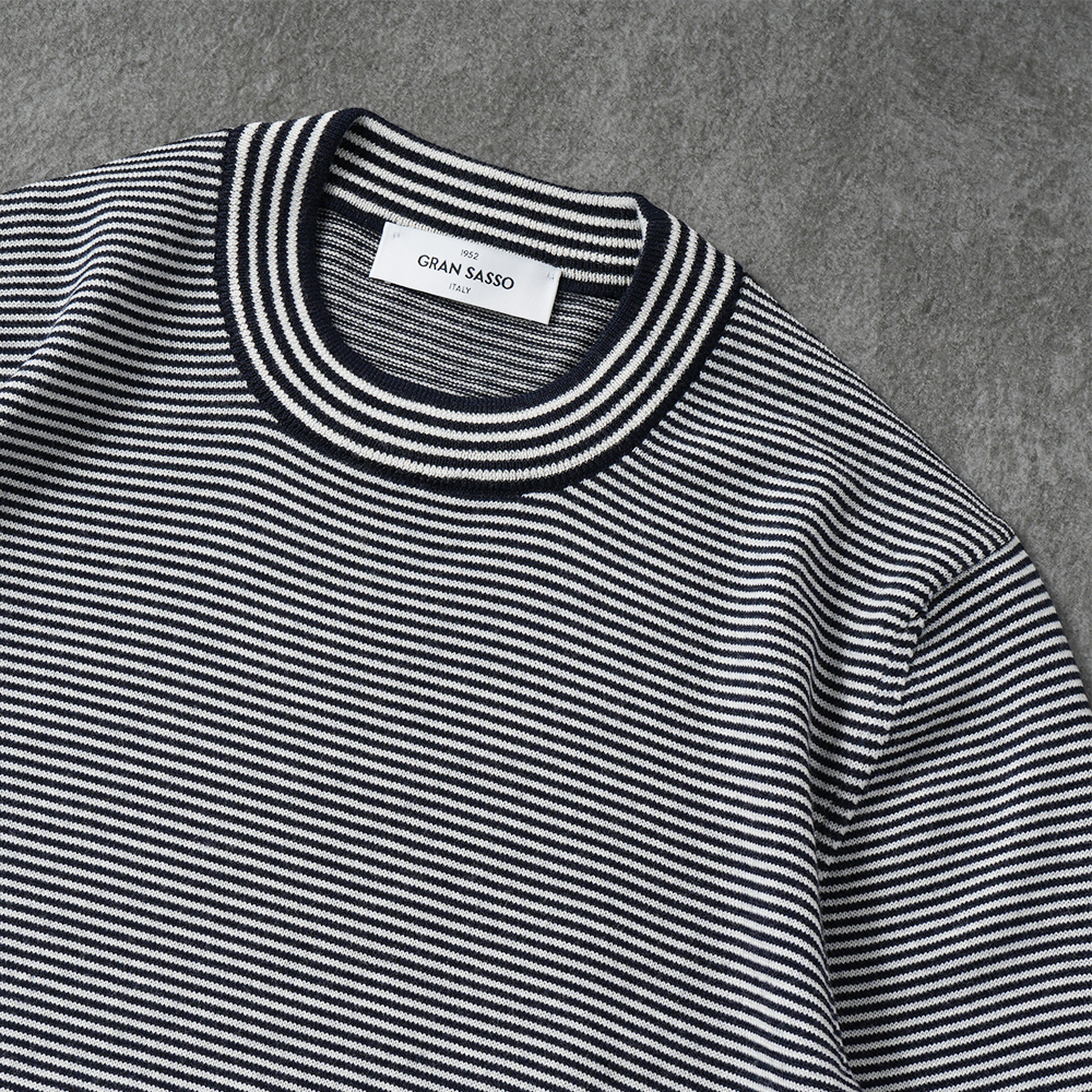 基本的には無地ばかりピックアップしているグランサッソのニットですが、ワードローブに新鮮な一着をプラスしていただきたく、ボーダーをご用意しました。