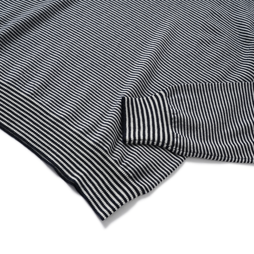 定番の12ゲージのメリノウールニットを、細かなピッチのボーダーで。