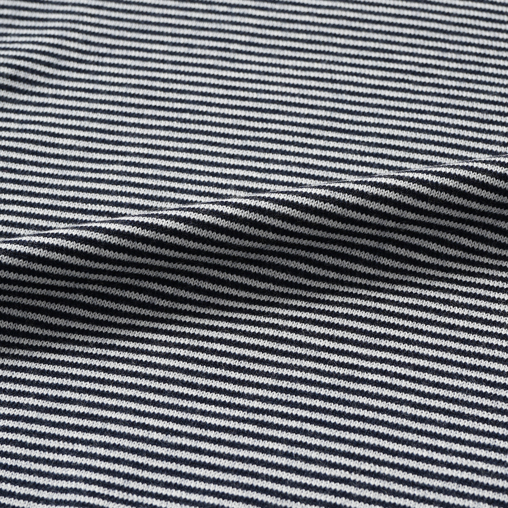 細かなマイクロボーダーにしていますので、ソリッドのニットに近い感覚でお使いいただけます。