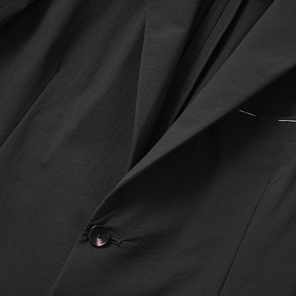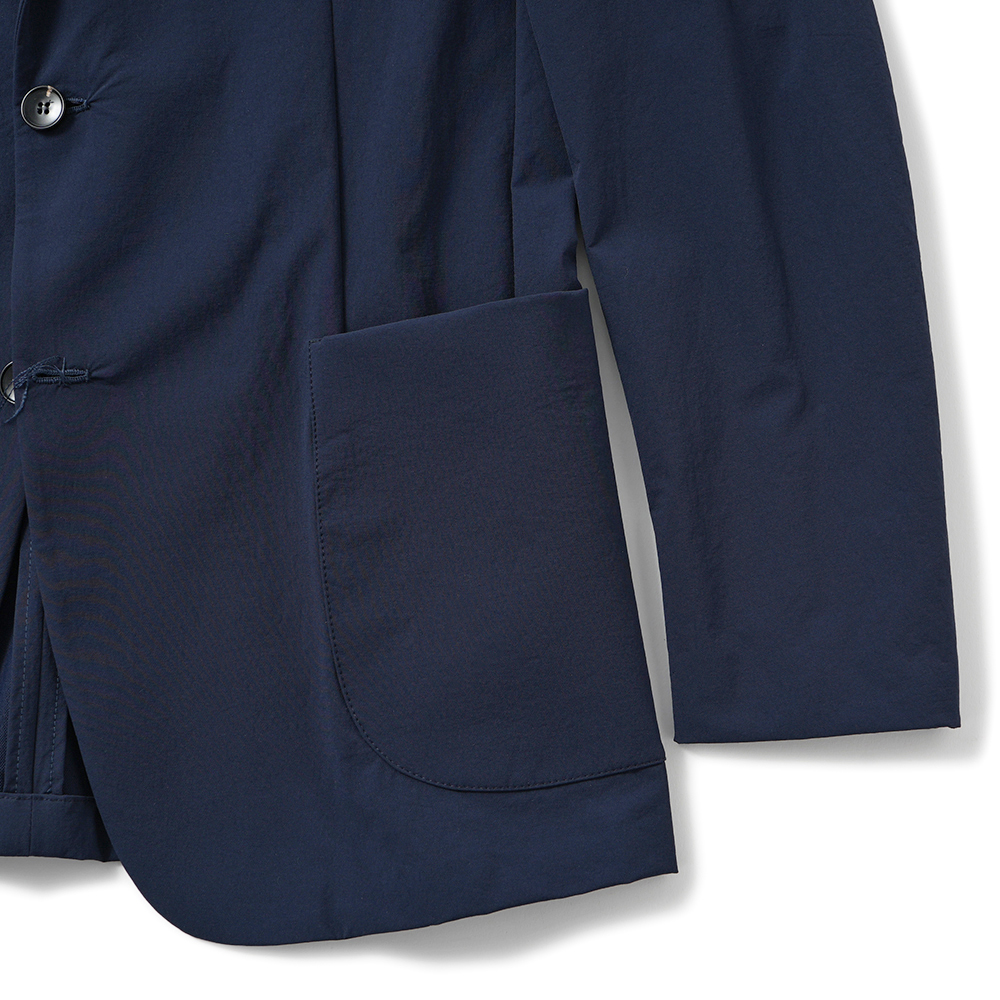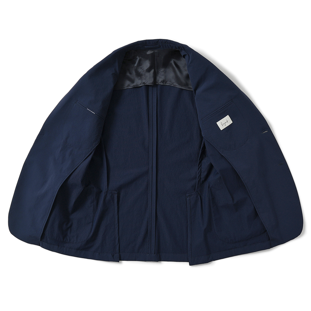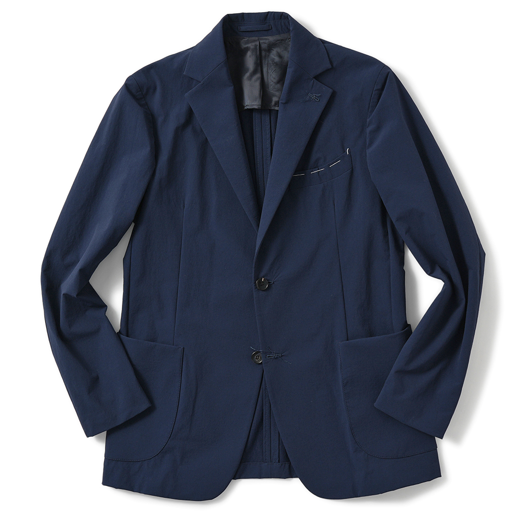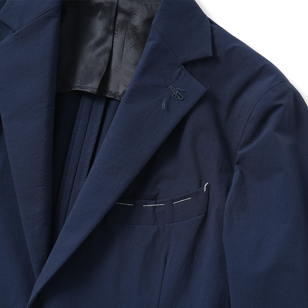 これまでなかった胸ポケット、袖裏地をオンし、ラペル幅を細身に。