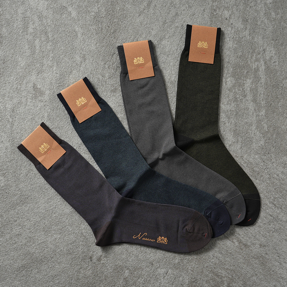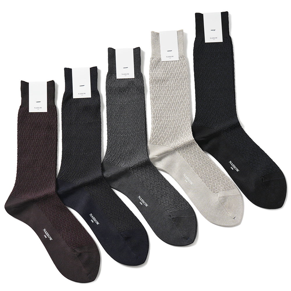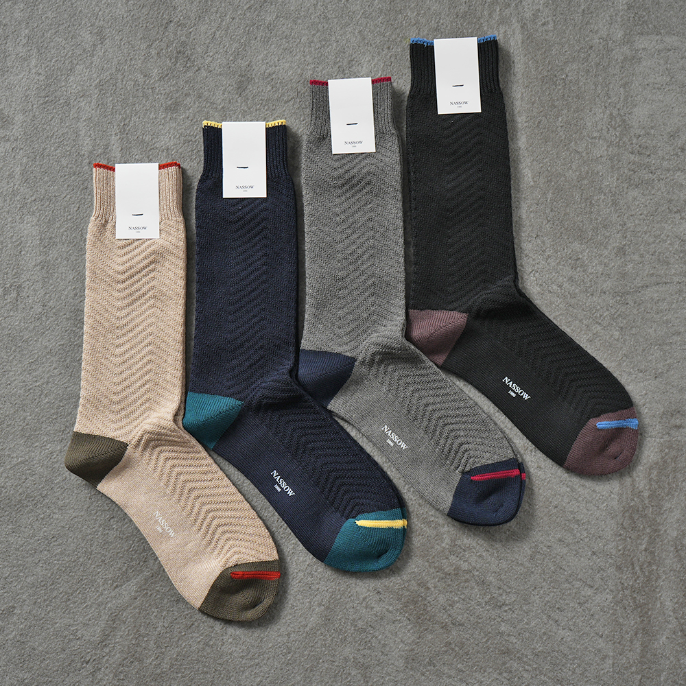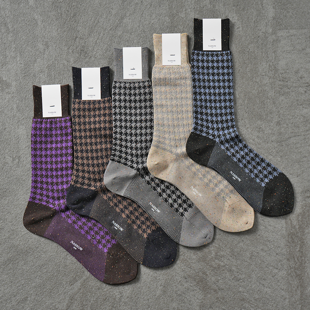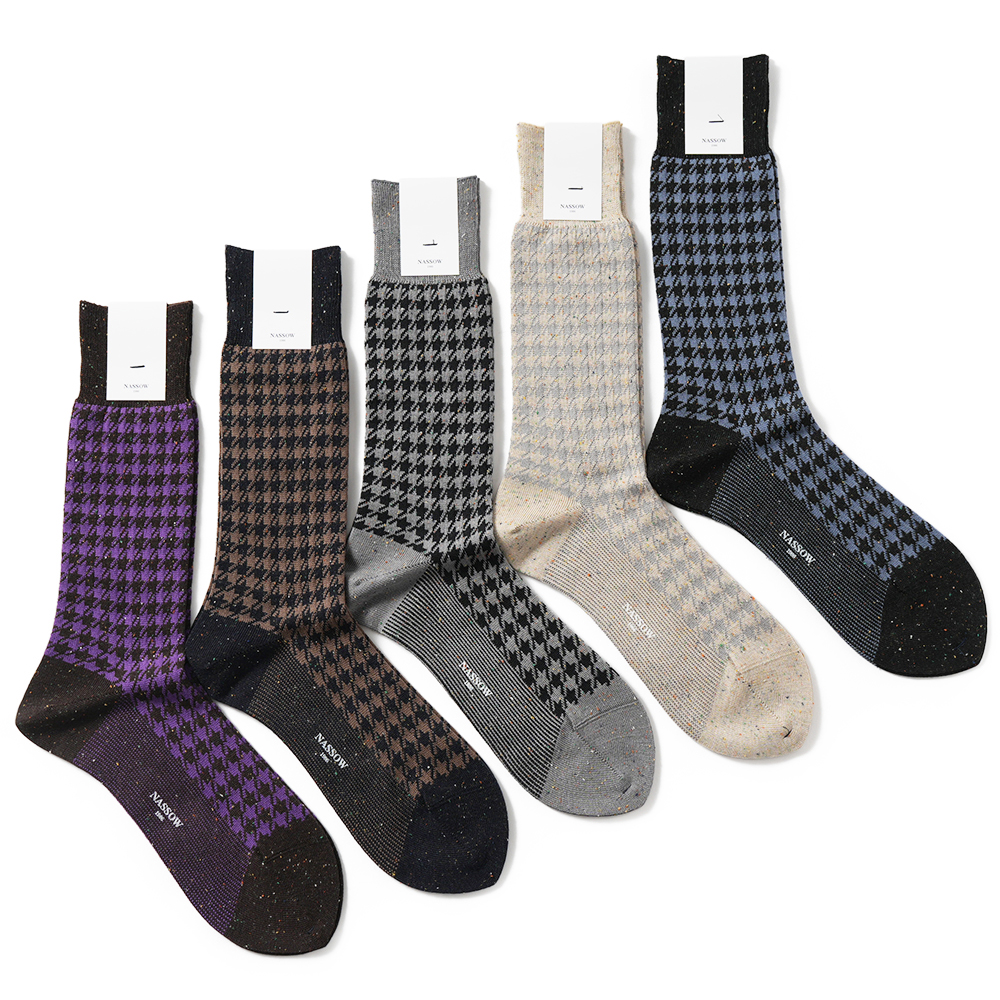 NASSOW バイカラー ドレス ソックス 1252100 / トラディショナル ジャガード ソックス 1252101 / カラーネップ ハウンドトゥース ソックス 1252107 / ヘリンボーン ドレス ソックス 1252105【新入荷】
