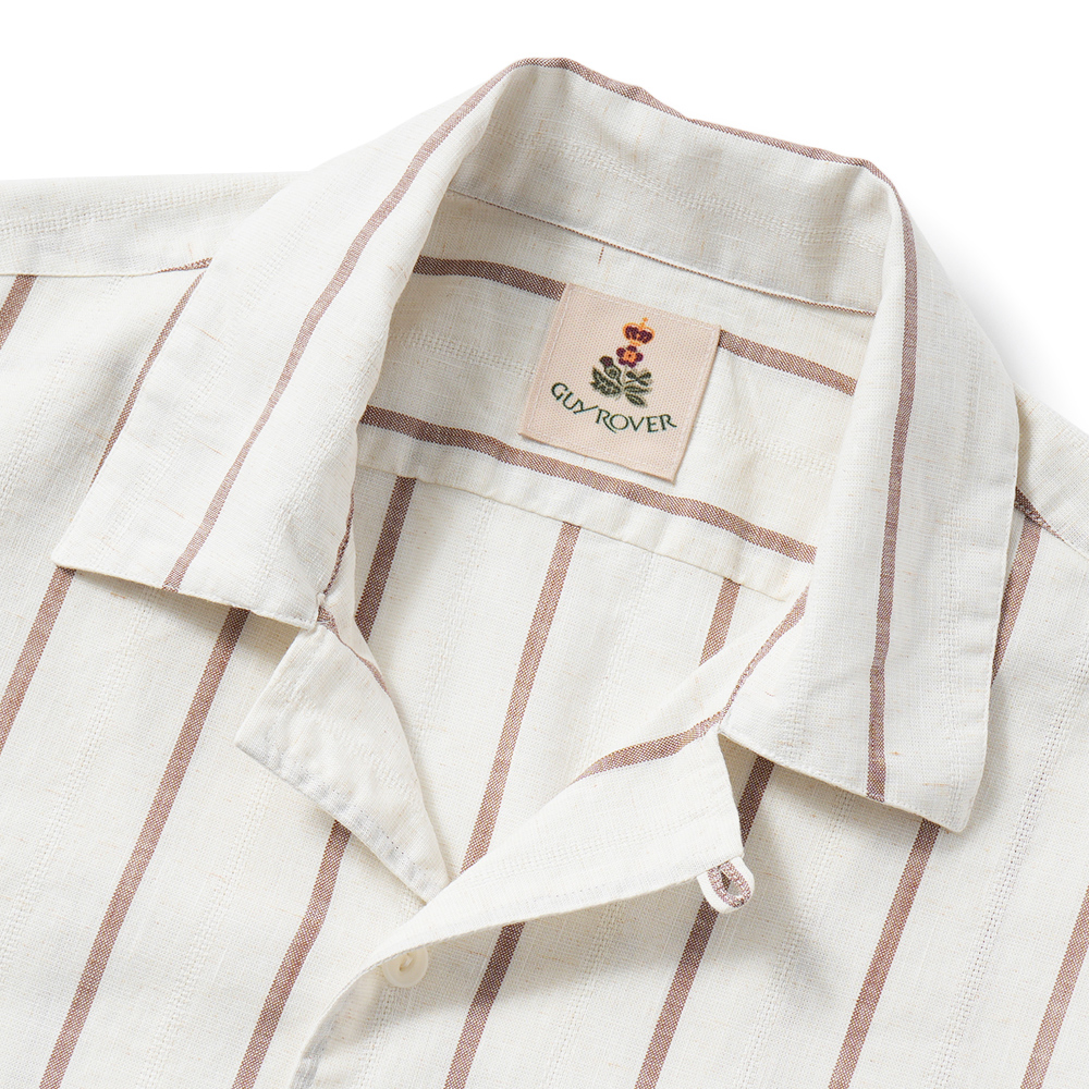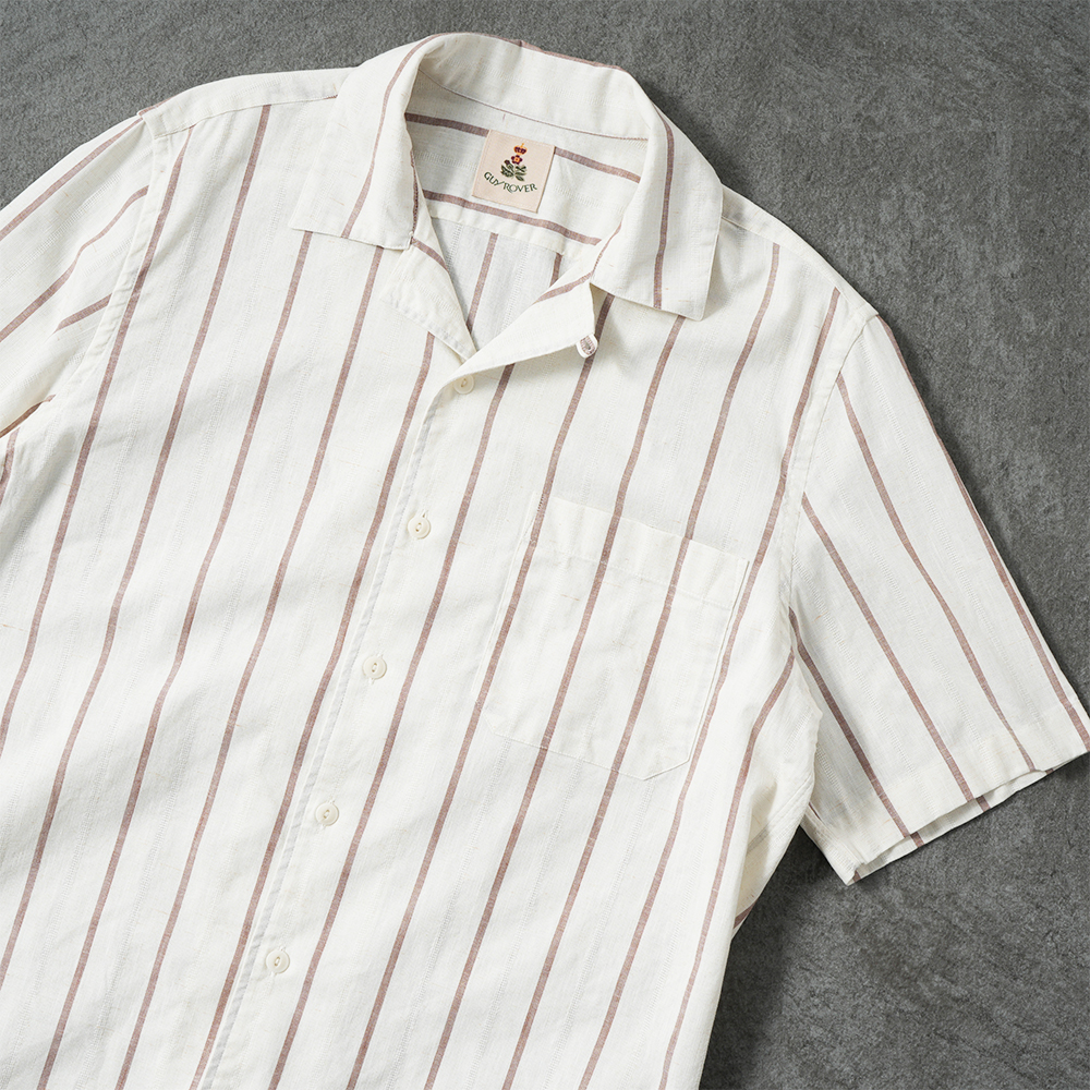 GUY ROVER コットン ストライプ オープンカラー ショートスリーブシャツ GR352LJ-561234【新入荷】