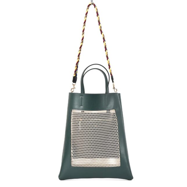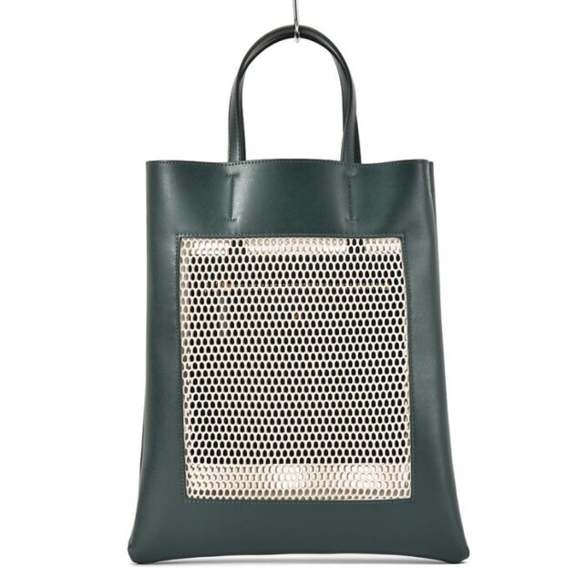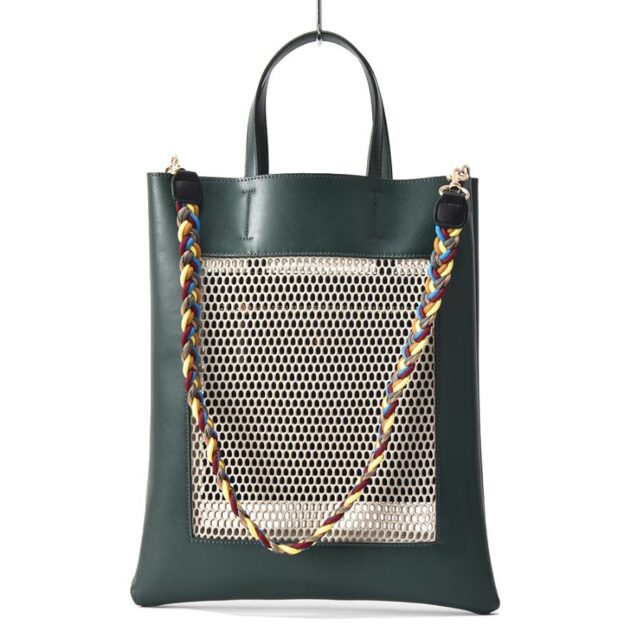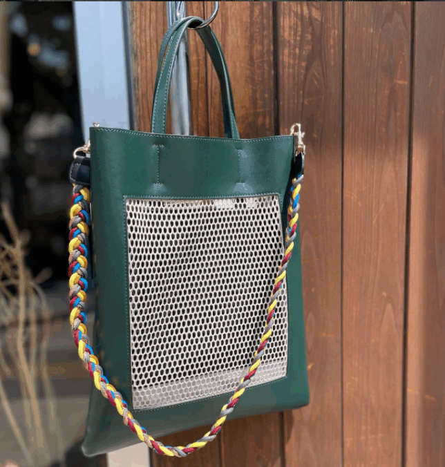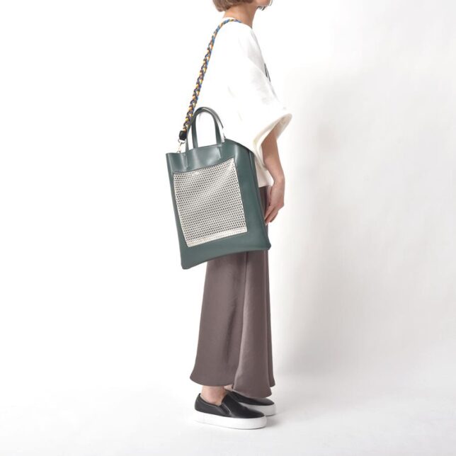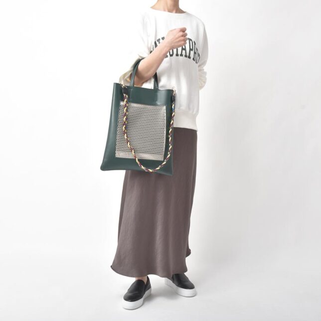 メッシュ素材とヴィーガンレザーを掛け合わせた、どこかモダンでキャッチーな佇まい。