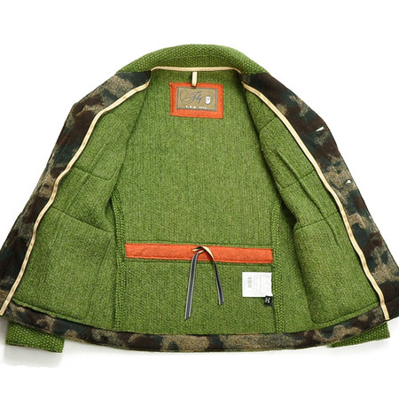 フラップ裏、袖裏、襟裏にはカモフラ柄を使ったり、
