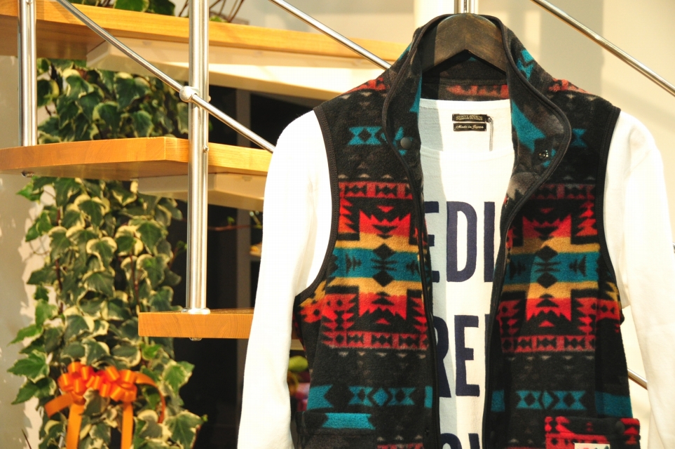ネイティブフリースベストが、これからはカットソーやシャツのアウターとして