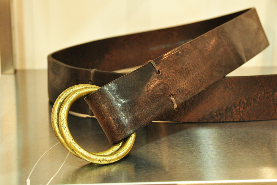 英国の雰囲気がプンプンな肉厚レザーのダブルリングベルト。