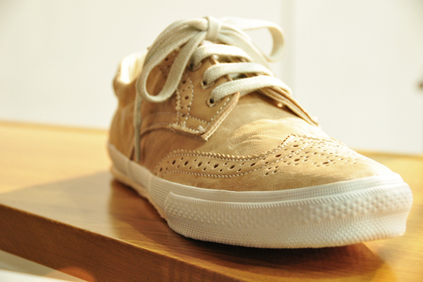スウェードよりも軽そうで薄いベージュカラーが暑い時期でもOK。