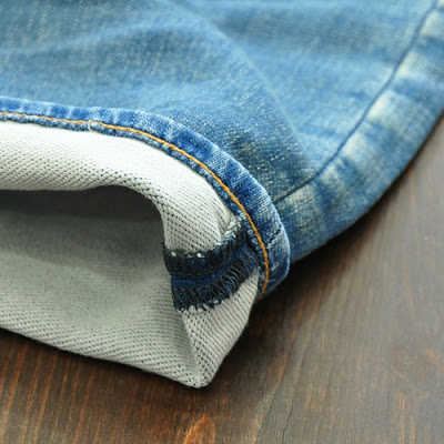 色落ちの加工にレーザーを使い、水と薬品の仕様を抑えたエコなアイテム。