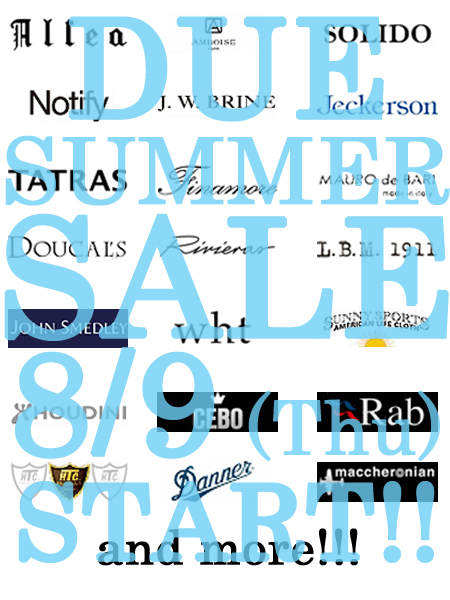SUMMER SALE !!2012年8月6日2020年3月31日 8月9日 木曜よりSUMMER SALEを開催します!! DUE、.R by DUEともにセールとなります。 半袖、ショートパンツはもちろん、シューズやサンダル、ベルトなども セール価格になります。 ちょっと気になっていたもの、実は狙っていたもの、 皆様のご期待に沿えるよう盛り上げていきます!! ぜひお越し下さい。 ※DUE-netは8月9日 木曜日 12:00よりセールスタートとなります。 DUE 埼玉県熊谷市宮町2-181 TEL 048-525-4626 DUE-net http://due-net.jp/ AMBOISE