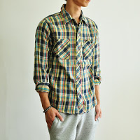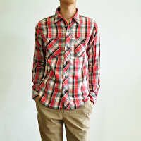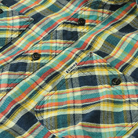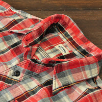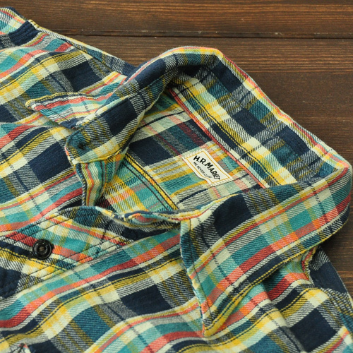 インドのネルチェックを使用し、三本針をあしらったベーシックなワークシャツ。